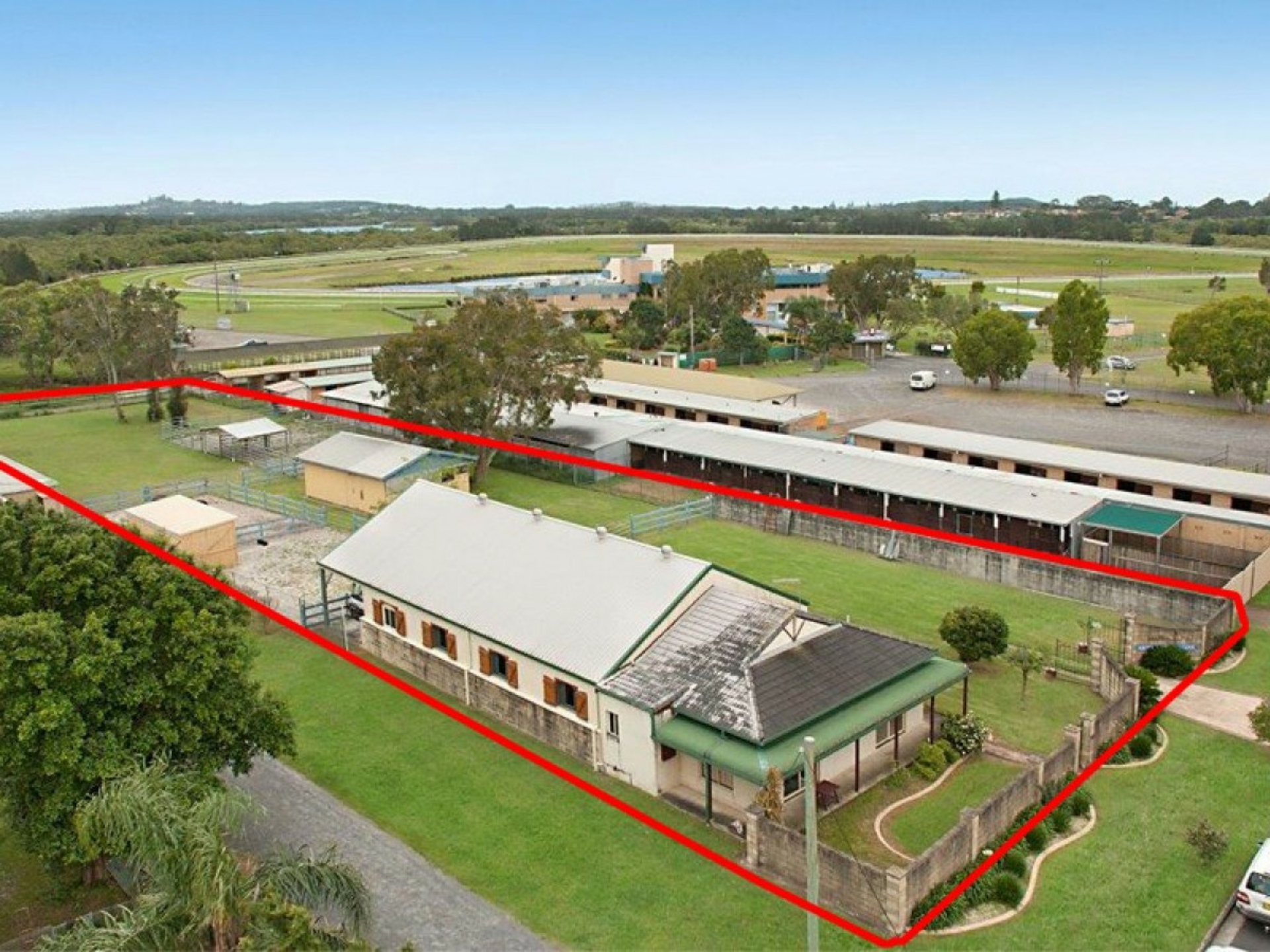This level block of land consisting of 3604m2 approximately, is located next to the Ballina Turf Club Racecourse. Access at the back of the property gives you direct entry onto the race track. Quality built main building consists of 8 stables, plus office/living accommodation with kitchen, bathroom and a separate toilet.