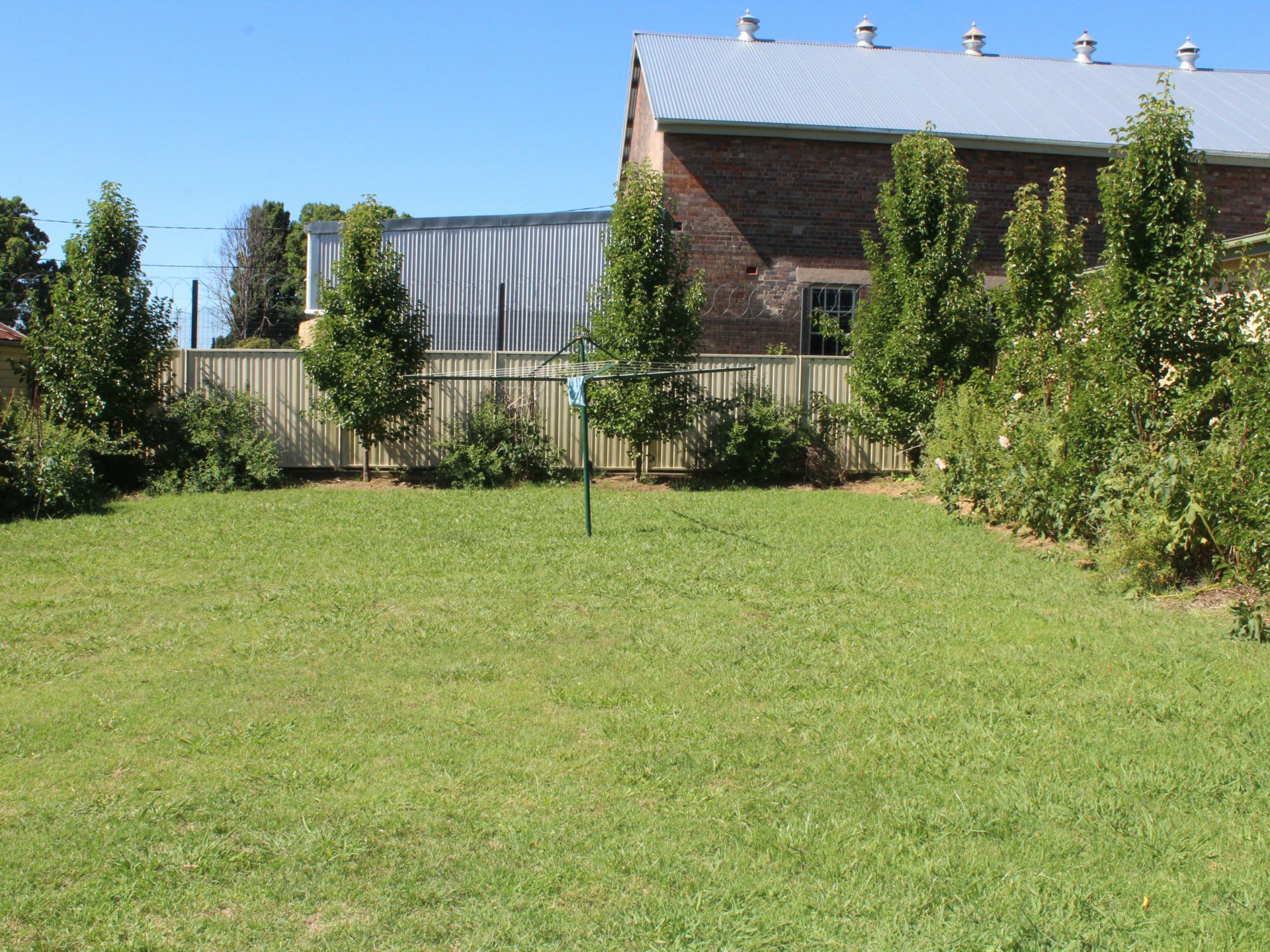 Large fully fenced back yard with off street parking.