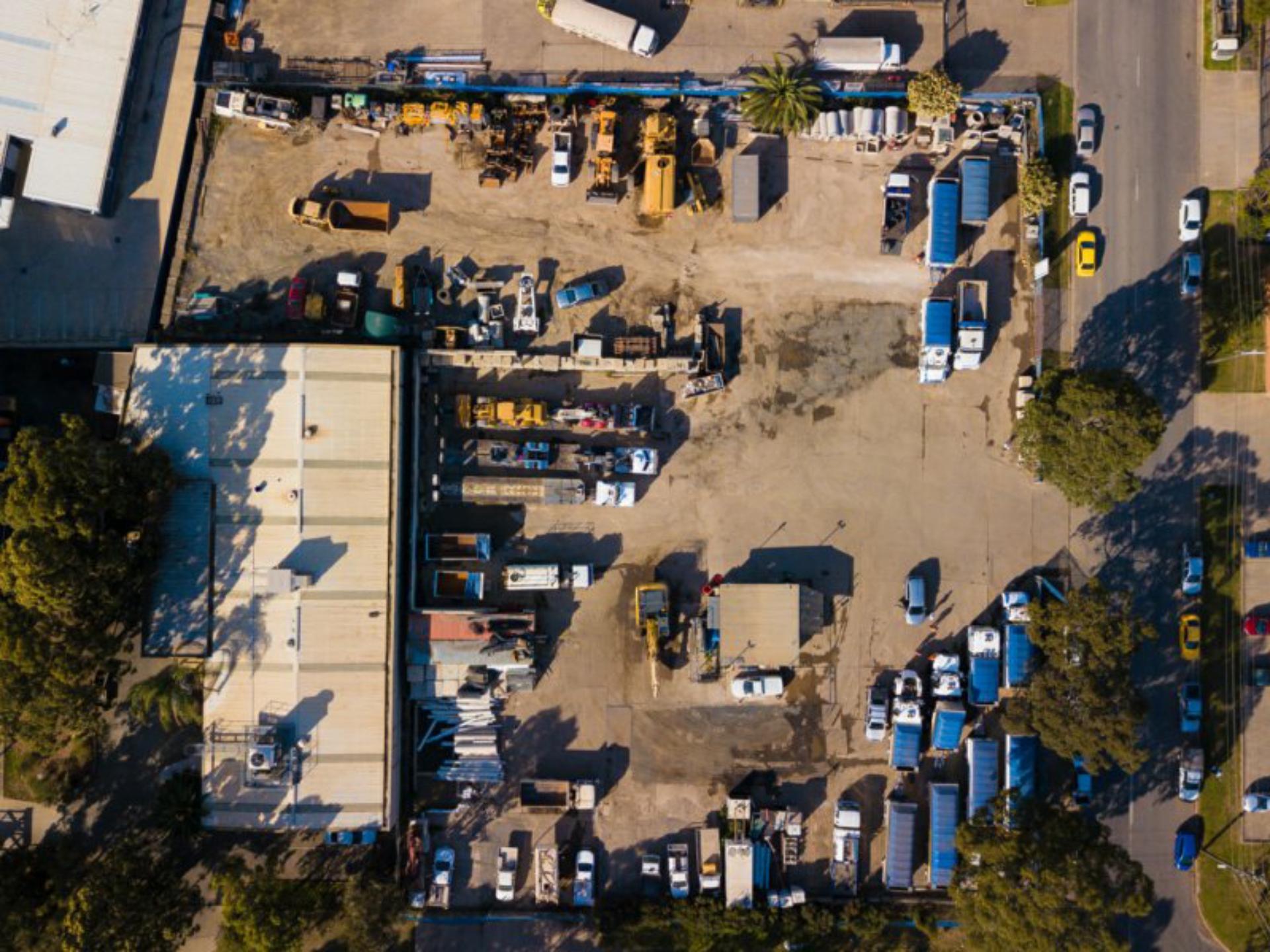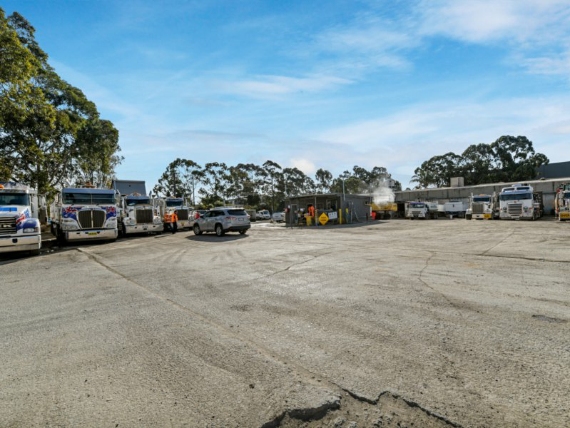 The site is accessed via two (2) street frontages and is currently used for truck and machinery storage yard.