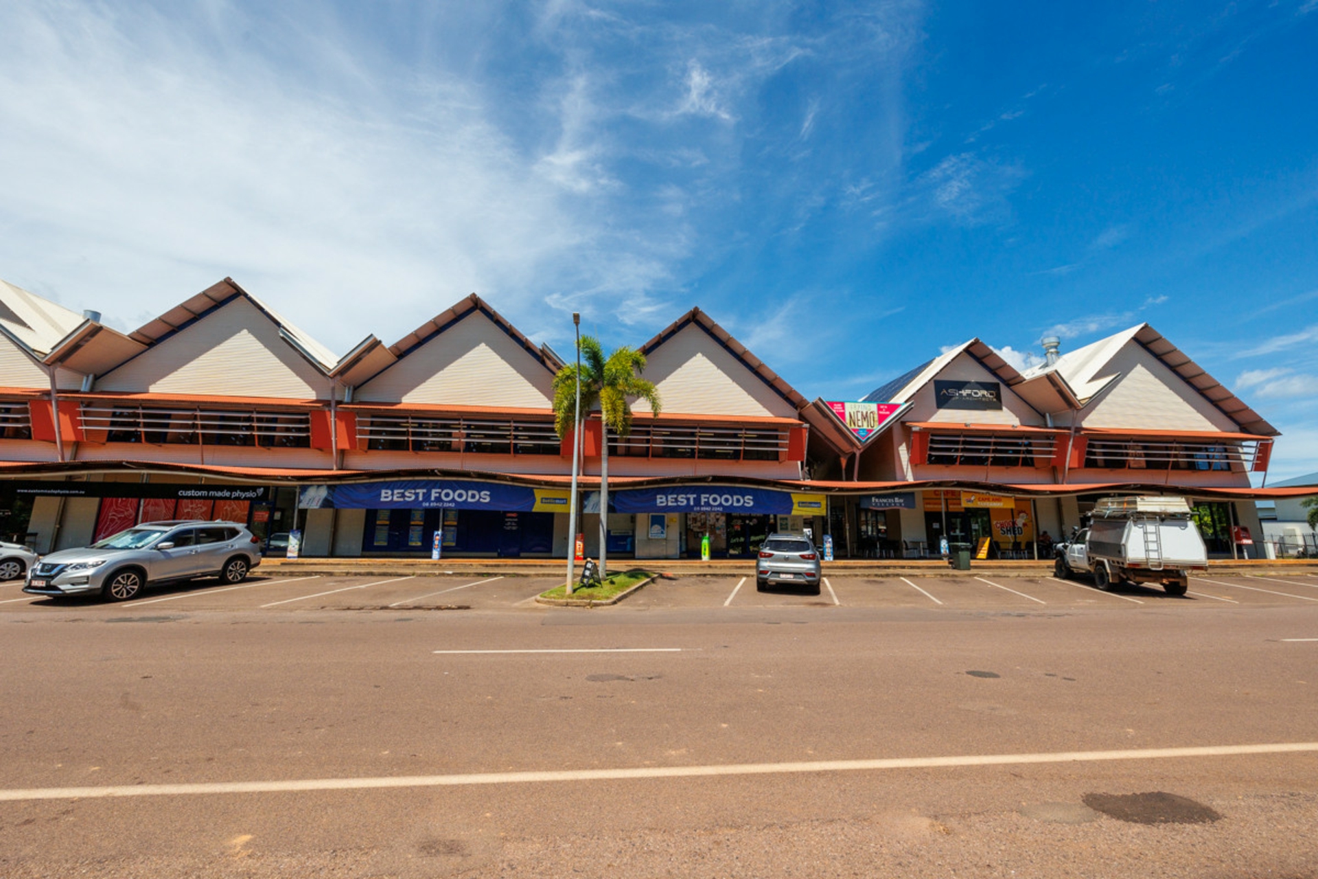 "France Bay Village", 90 Frances Bay Drive is a two story commercial complex on approximately 6,690 square metres of "Specific Use Darwin 10" zoned land. The complex optimizes the frontage to Frances Bay Drive with the building positioned along the building including 20 60 degree car parks directly accessed from France Bay Drive. This complex offers 67 off street car parks so there are always car parks available.
