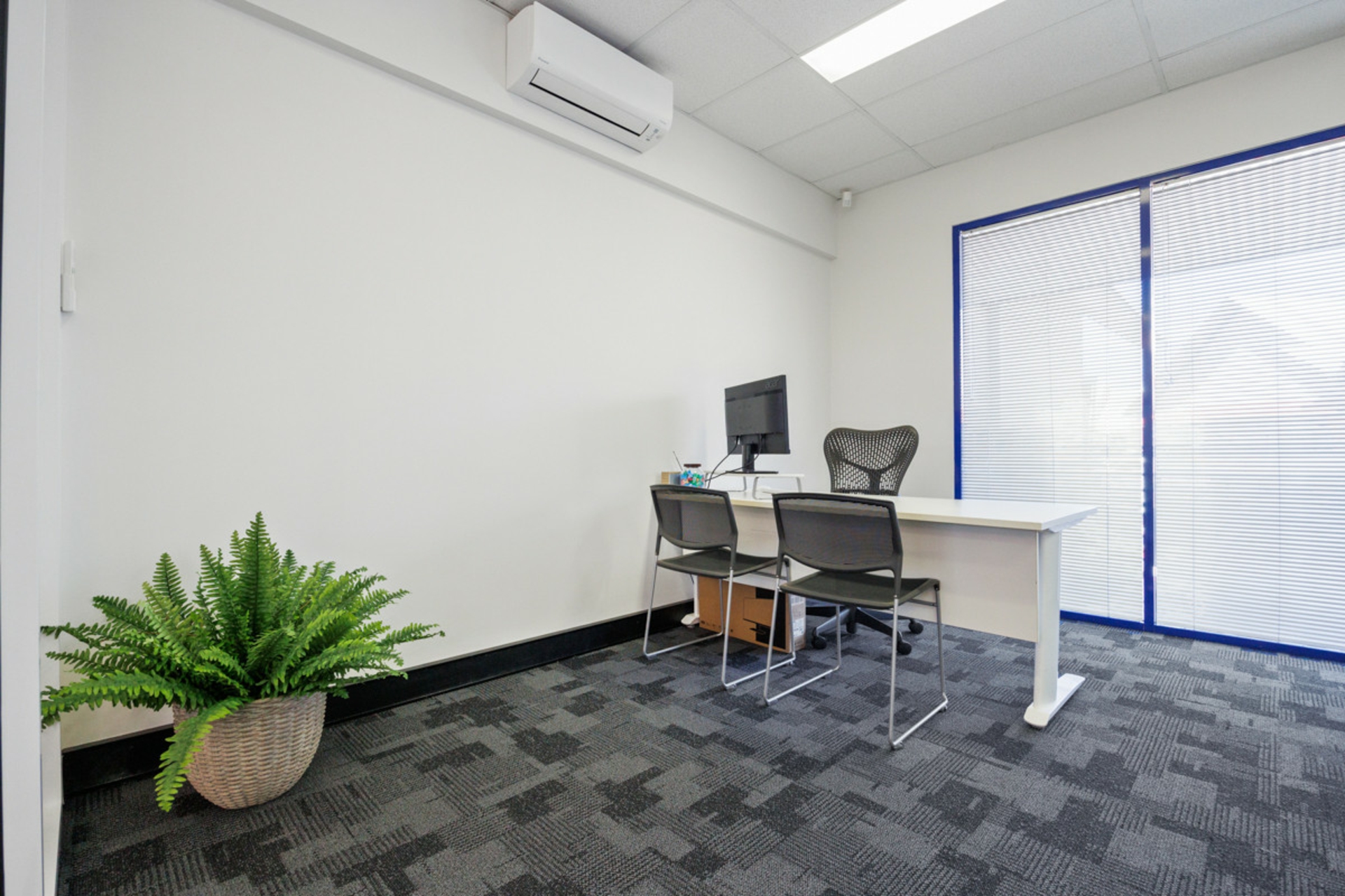 Unit 21 is a 96 square metre commercial office, located on the first floor at "France Bay Village". This unit is a regular shape and has been freshly painted and new carpets. This tenancy is mostly open plan, it includes two enclosed offices.