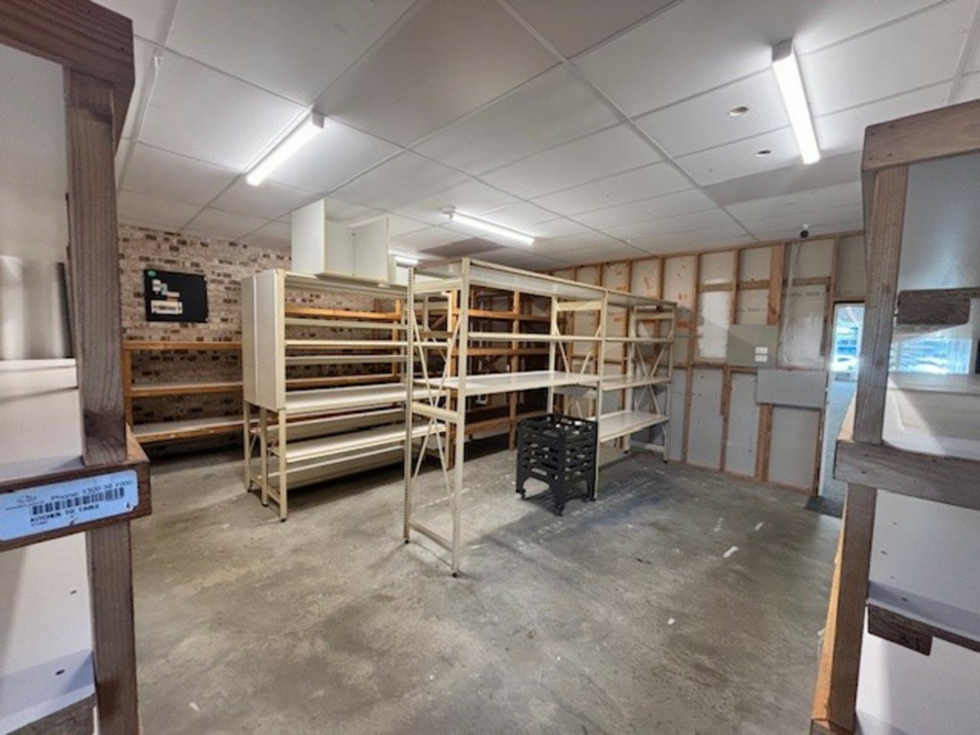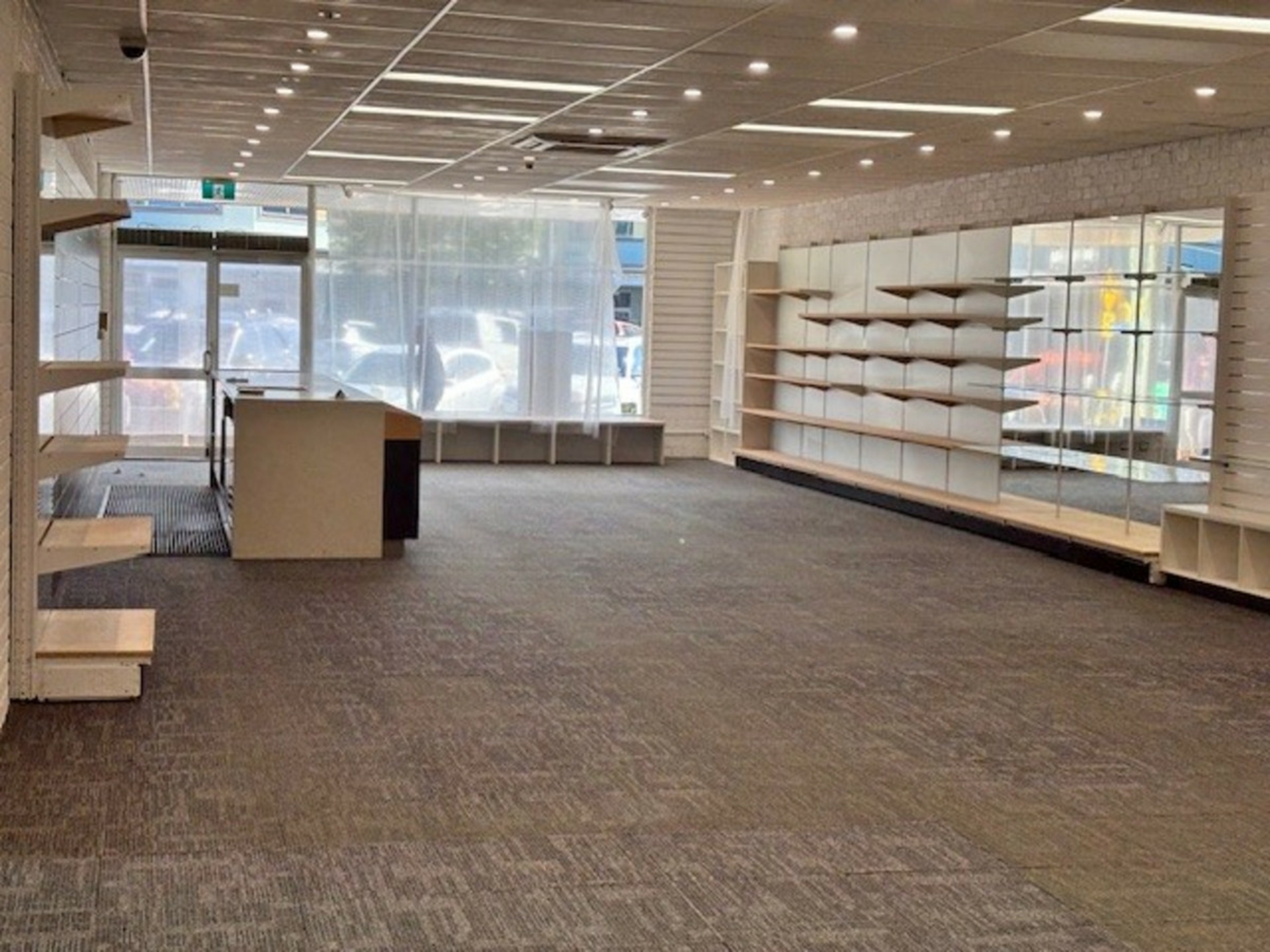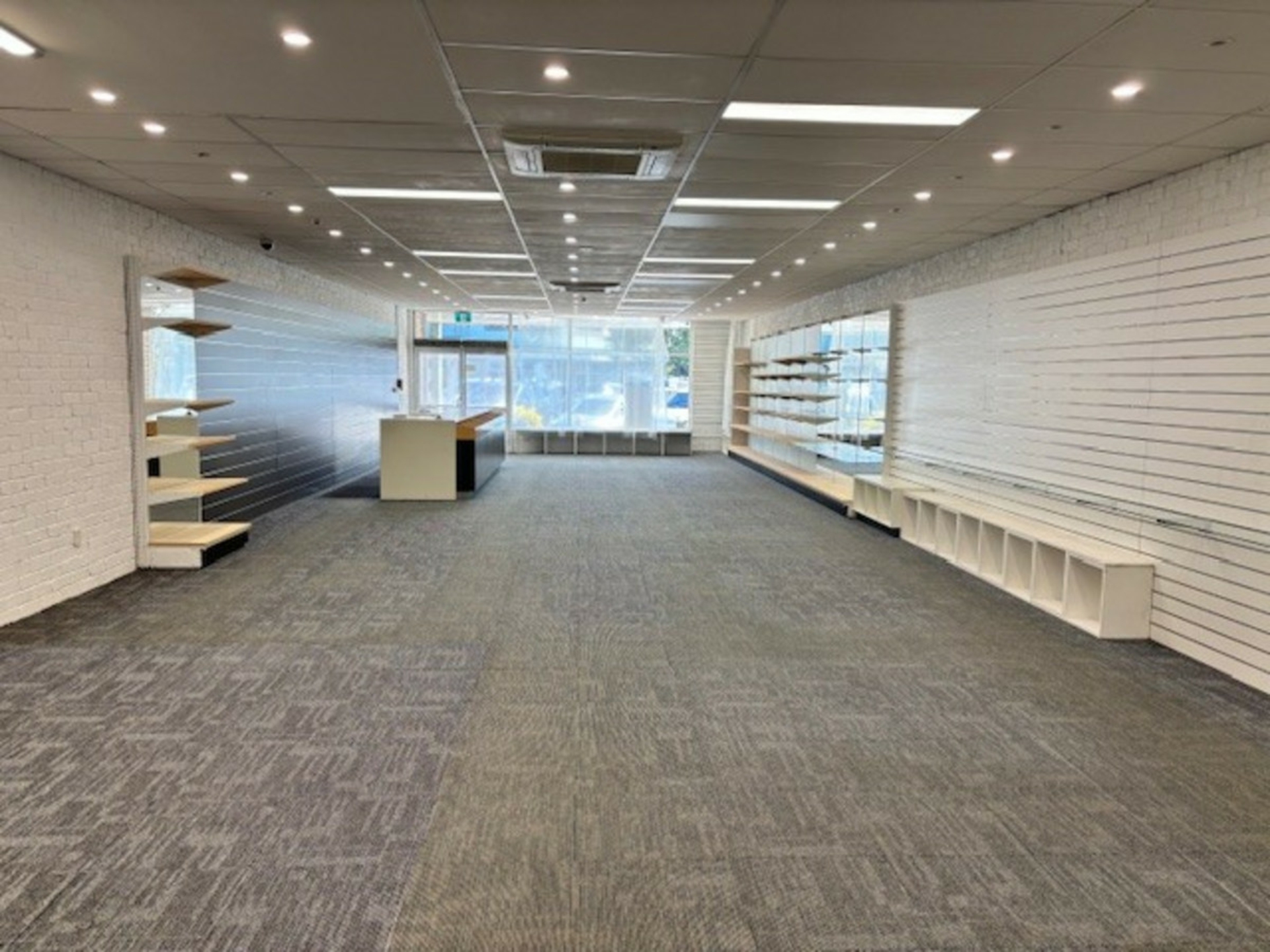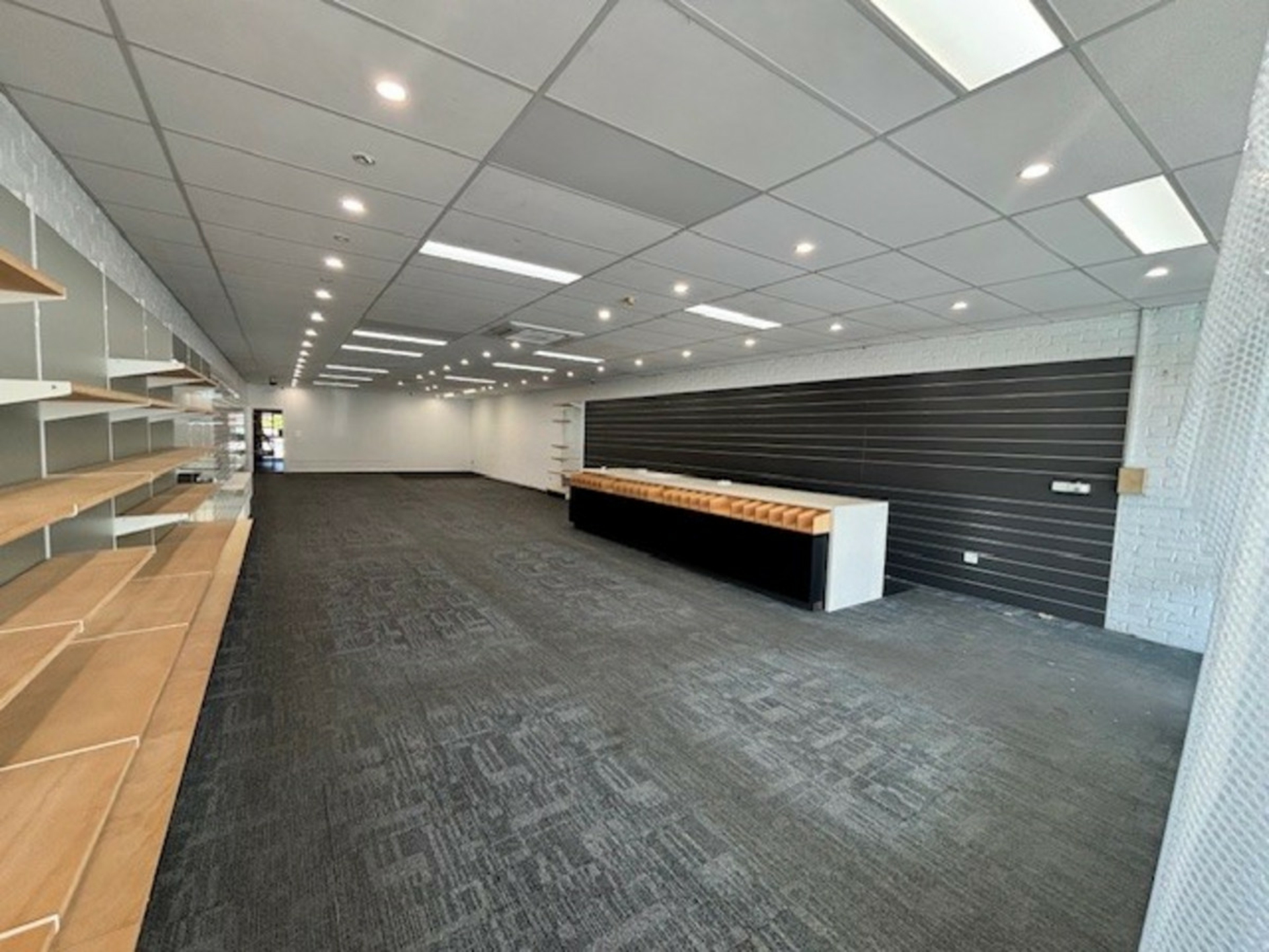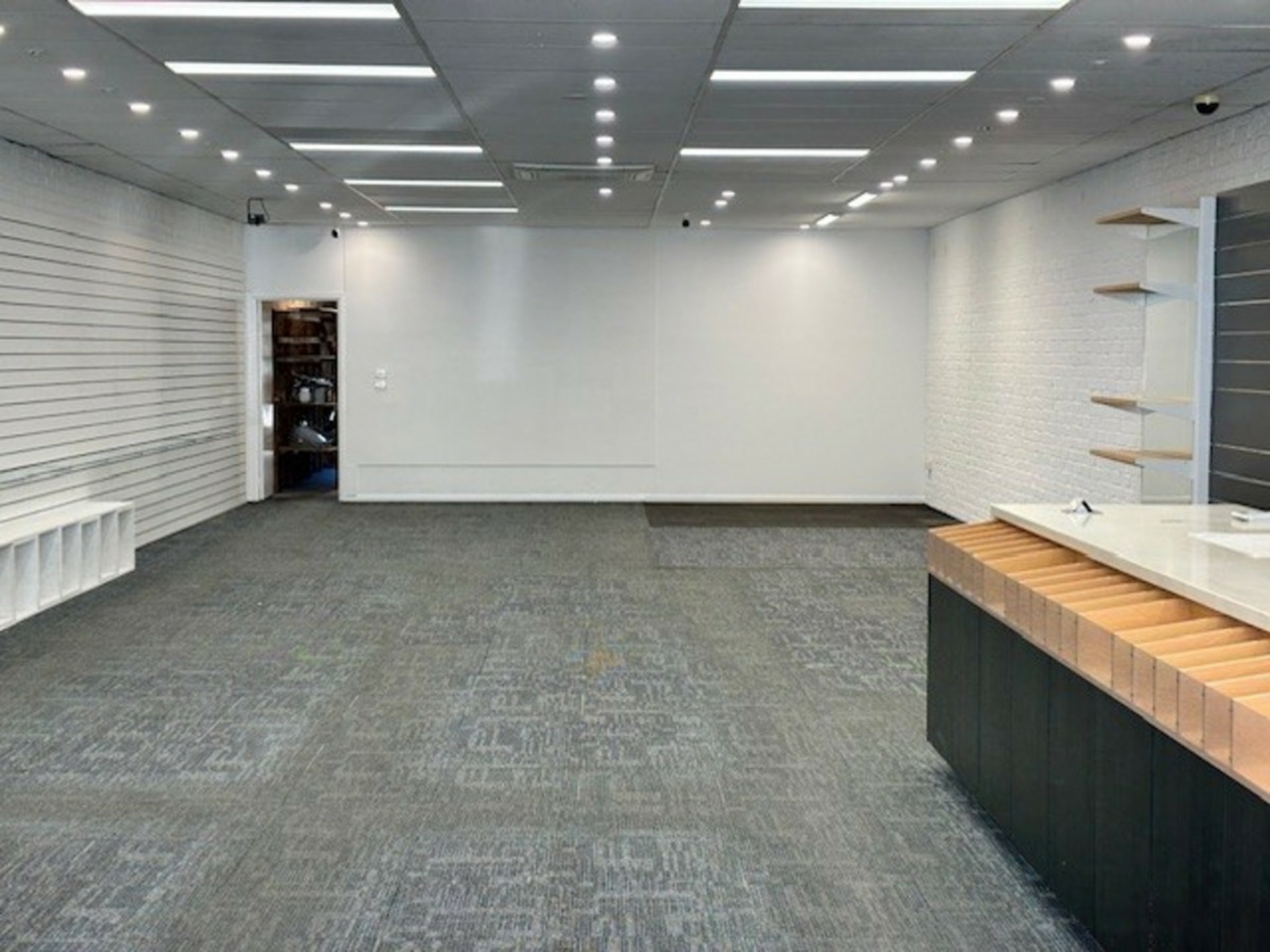 Blank canvas: Spacious open plan area, complete with built-in shelving and reception counter-ideal for retail, showroom, studio, office, or creative concept.