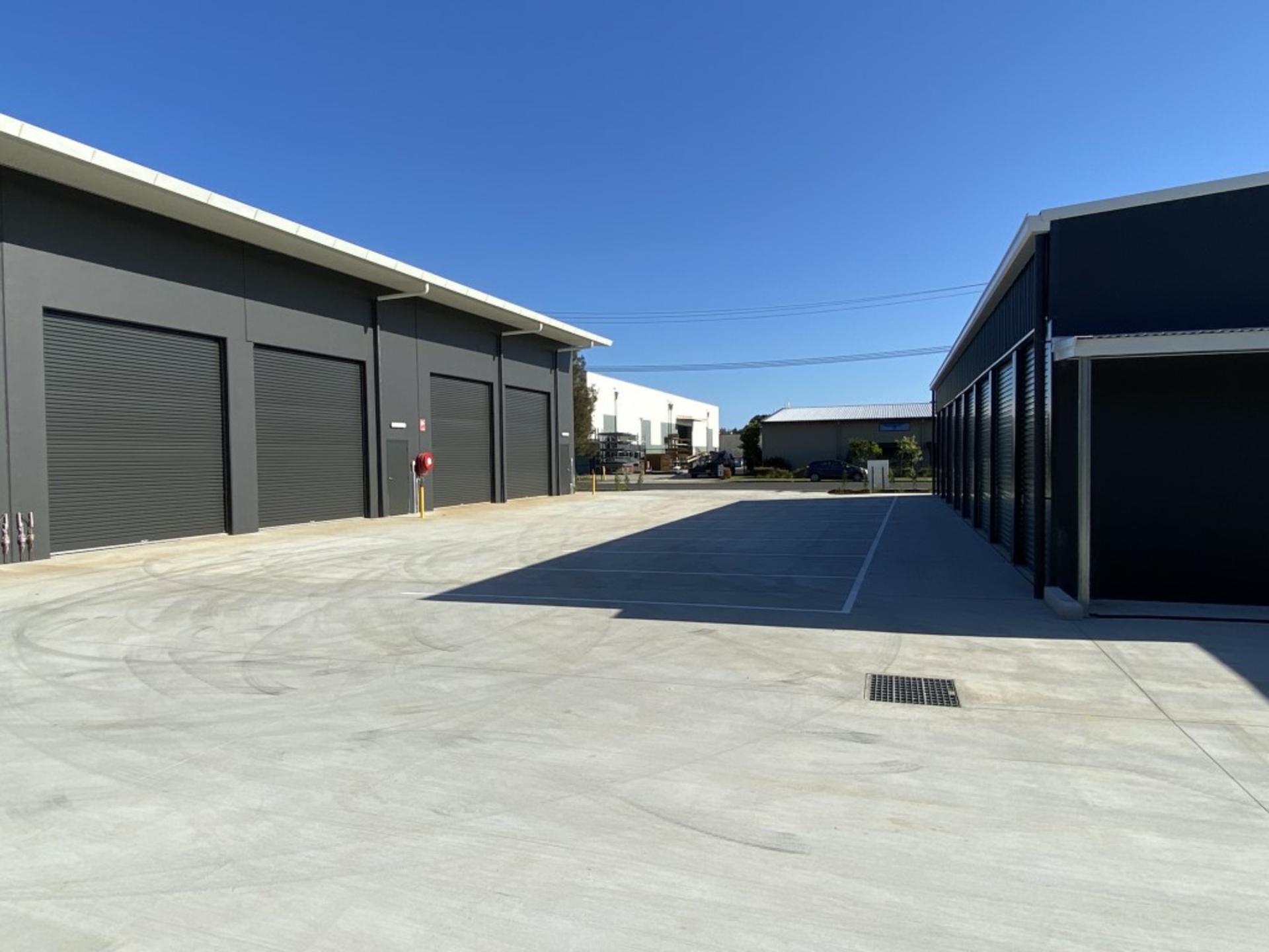 Just completed. Various sized industrial sheds ranging from 117m2 up to 423m2. The construction is quality high concrete tilt-up with a minimum internal height clearance between five metres and six metres and a roller door height of four metres. Each unit will contain a kitchenette and accessible toilet.
