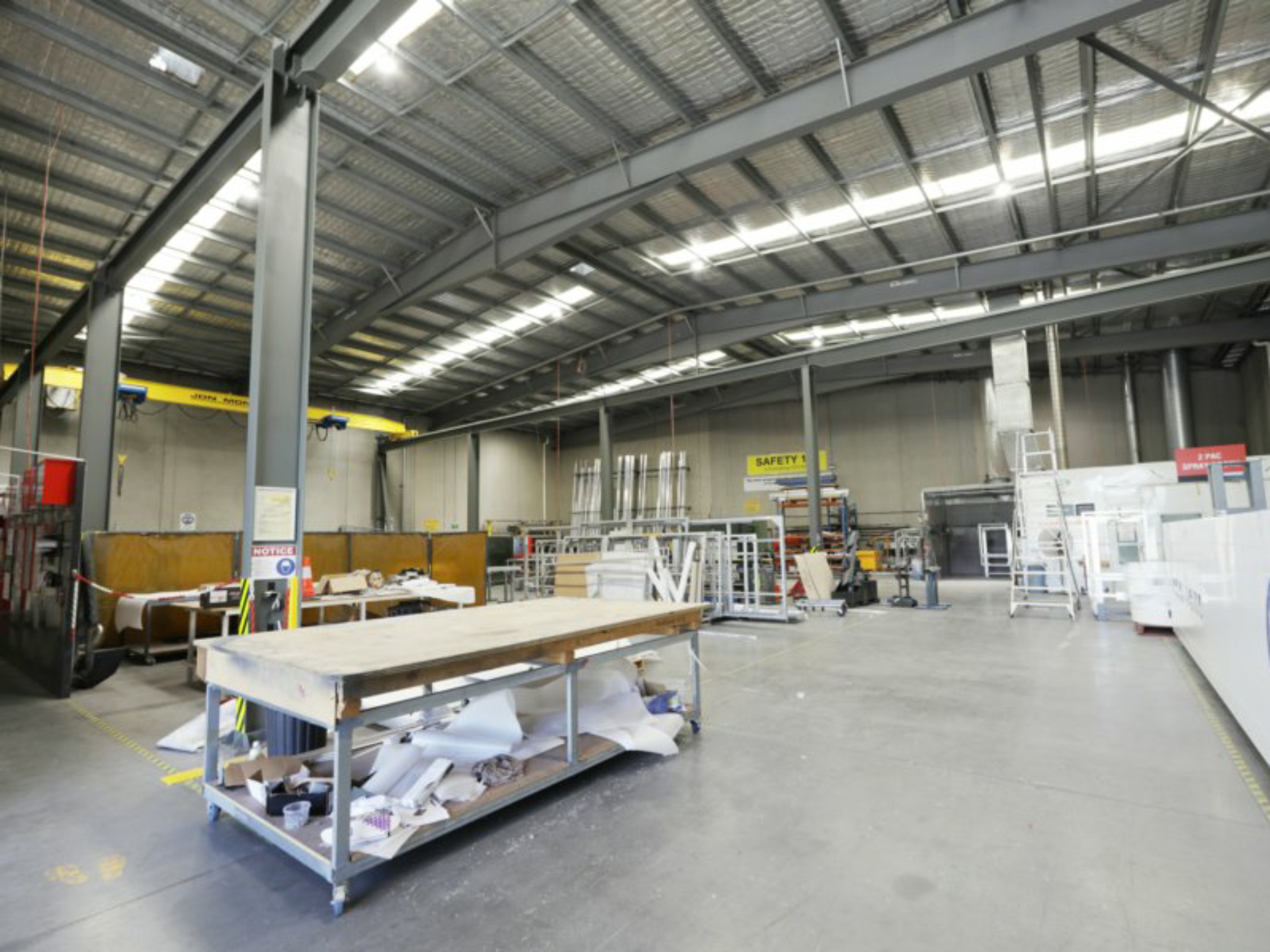 High clearance concrete panel factory/warehouse with eight (8) metre internal clearance is accessed via an over sized container height roller door. Office area is partitioned with floating timber floors and ducted air conditioning. GANTRY CRANE TO BE REMOVED FROM FACTORY/WAREHOUSE.
