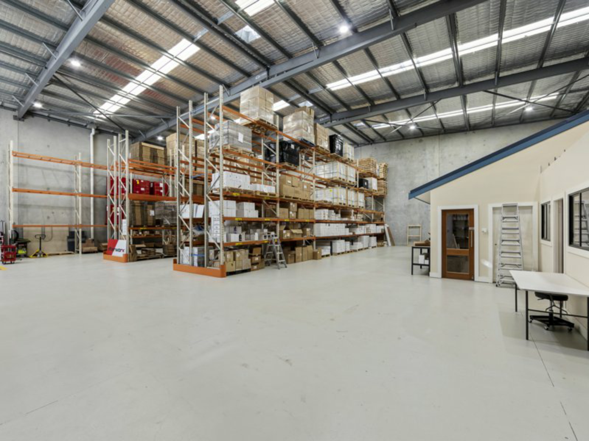 Located on this 1,762 sqm parcel of land is this very modern freestanding industrial building, access to the clearspan factory/warehouse area is via a container height roller door. The property is finished to the highest of standards with partitioned offices, polished timber flooring, carpet, ducted air-conditioning, M/F amenities, large format training rooms, and kitchen facilities.