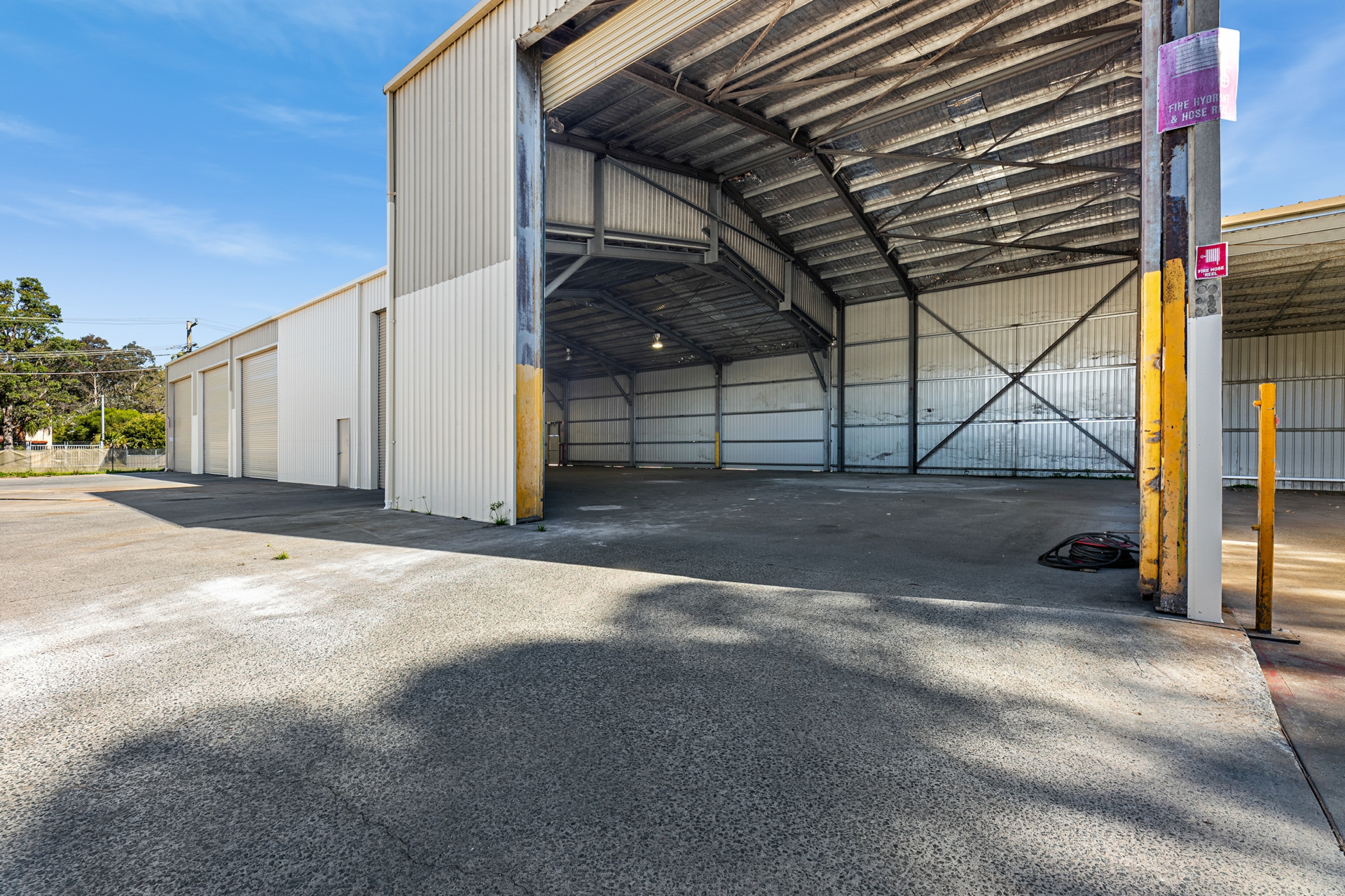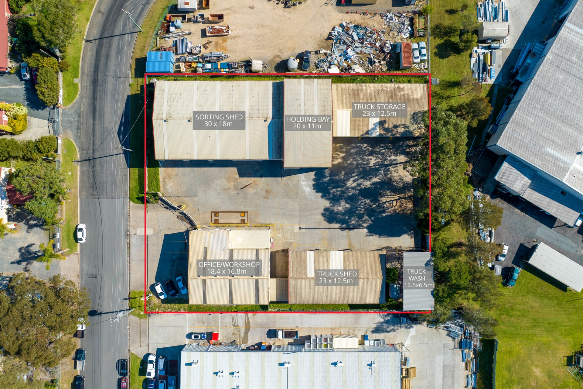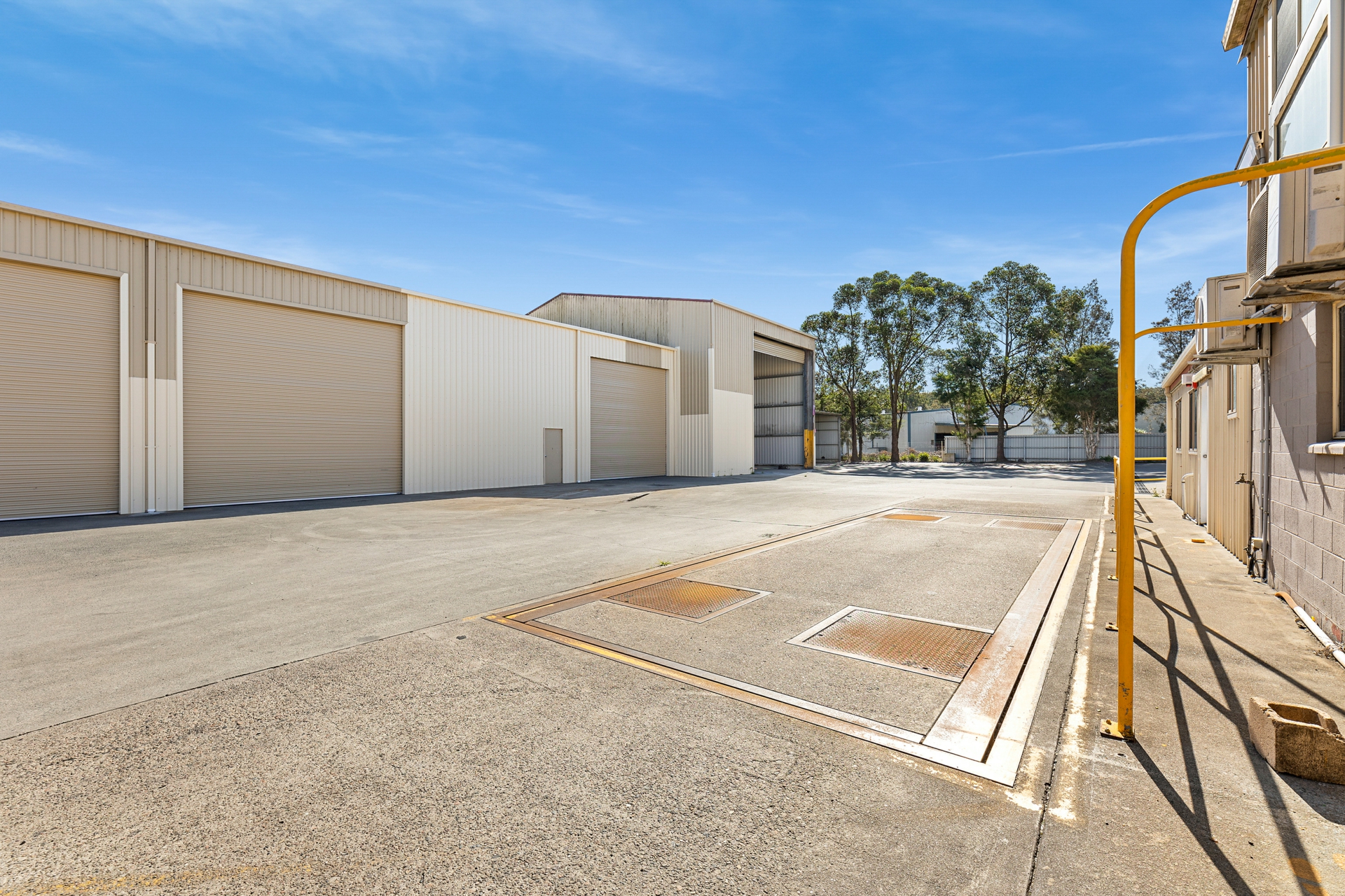 Large enclosed sheds or workspace plus 8 open bay truck storage. Truck wash bay and weigh station. Lockable site area is very secure.