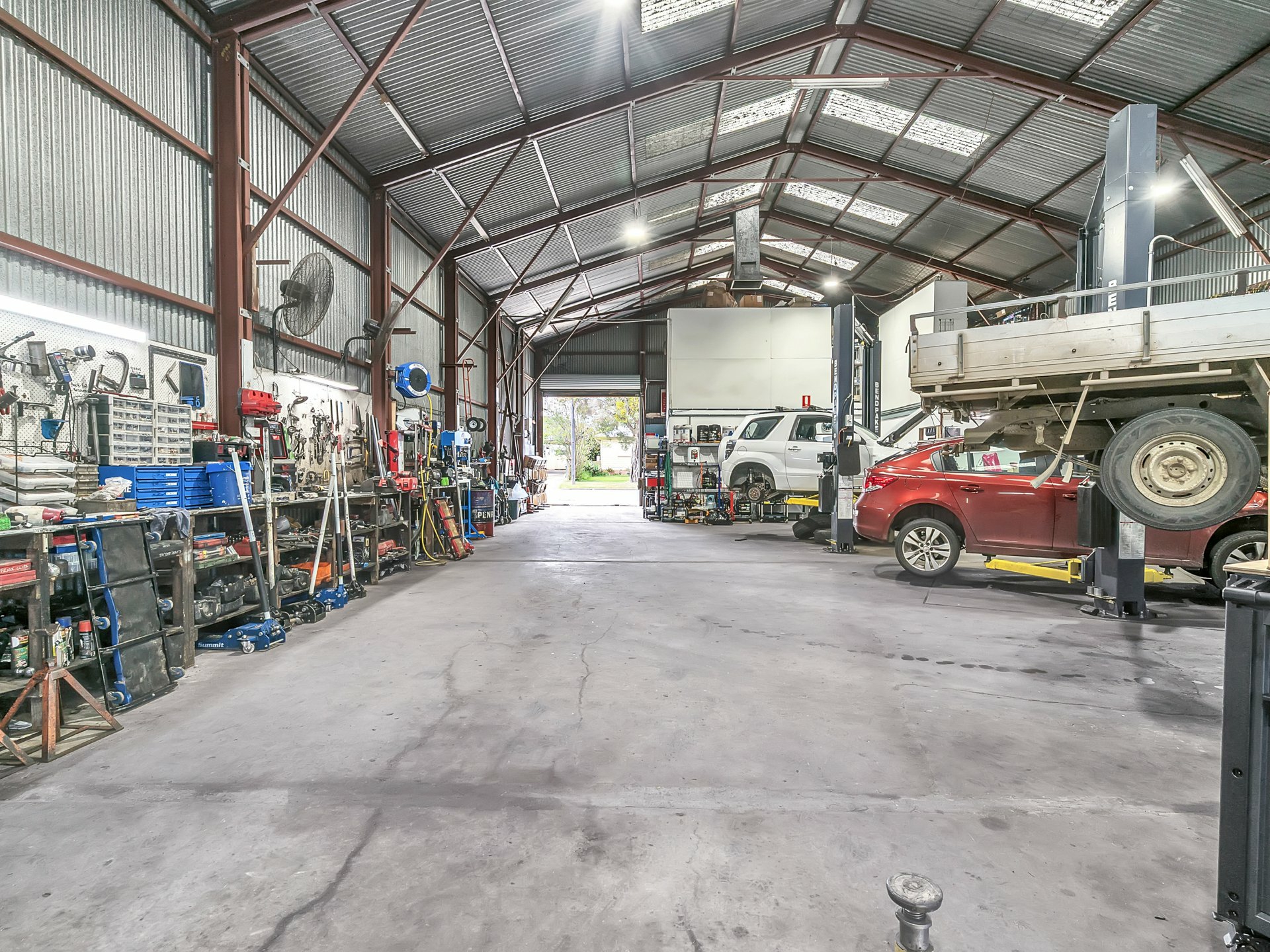 Positioned on an approximately 683m2 block, this steel-framed shed offers a generous 288m2 (aprox) of functional workspace, currently set up as an automotive workshop. Key features include: