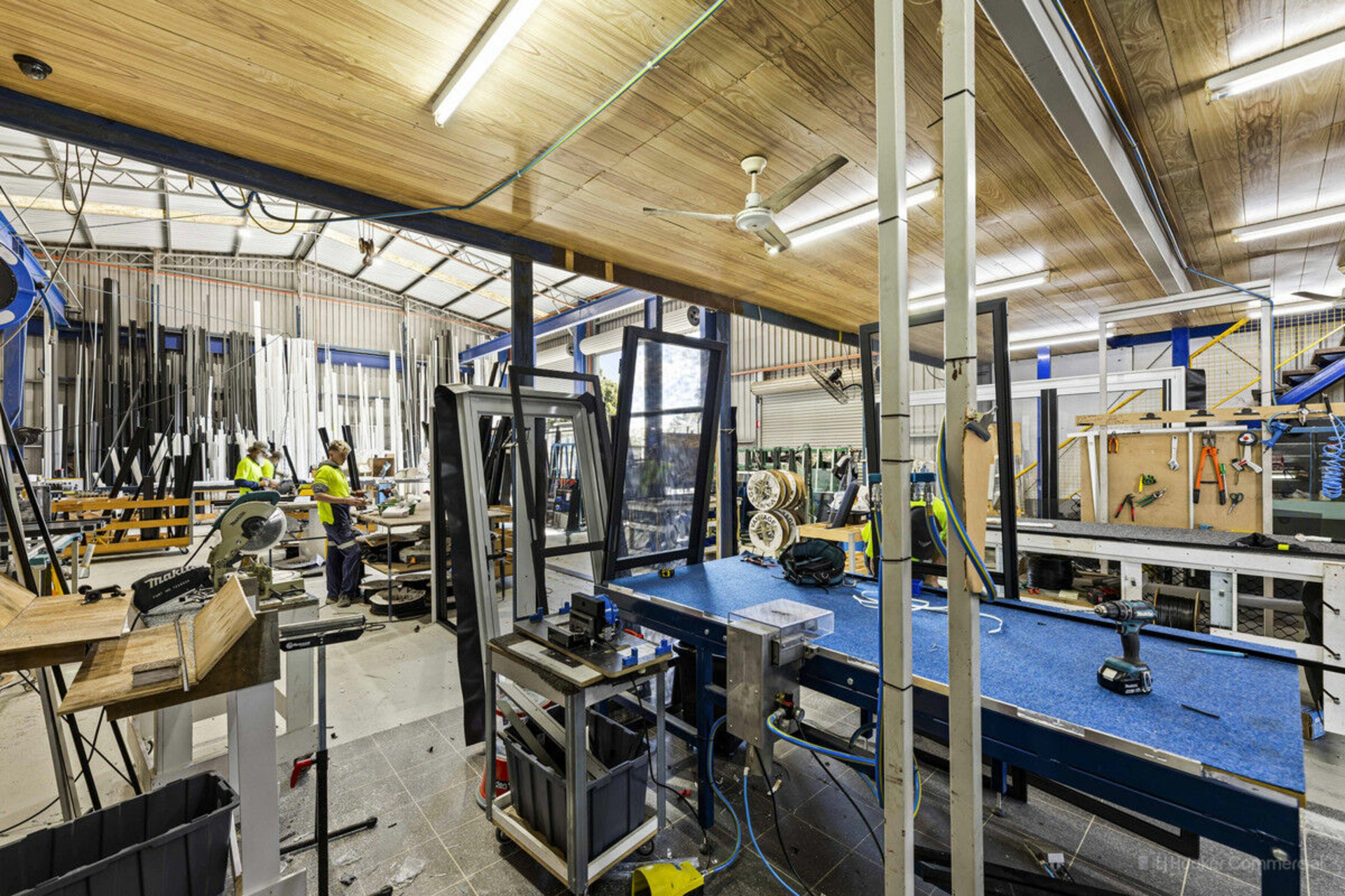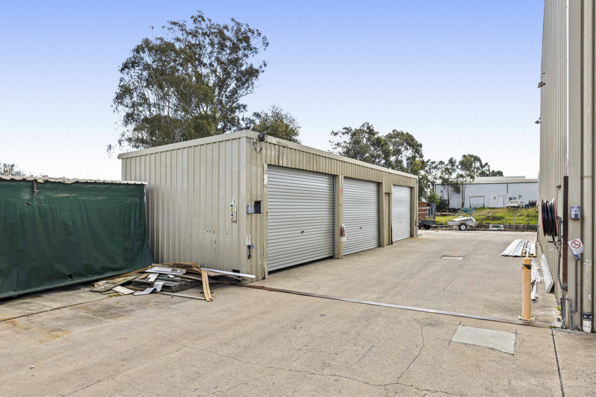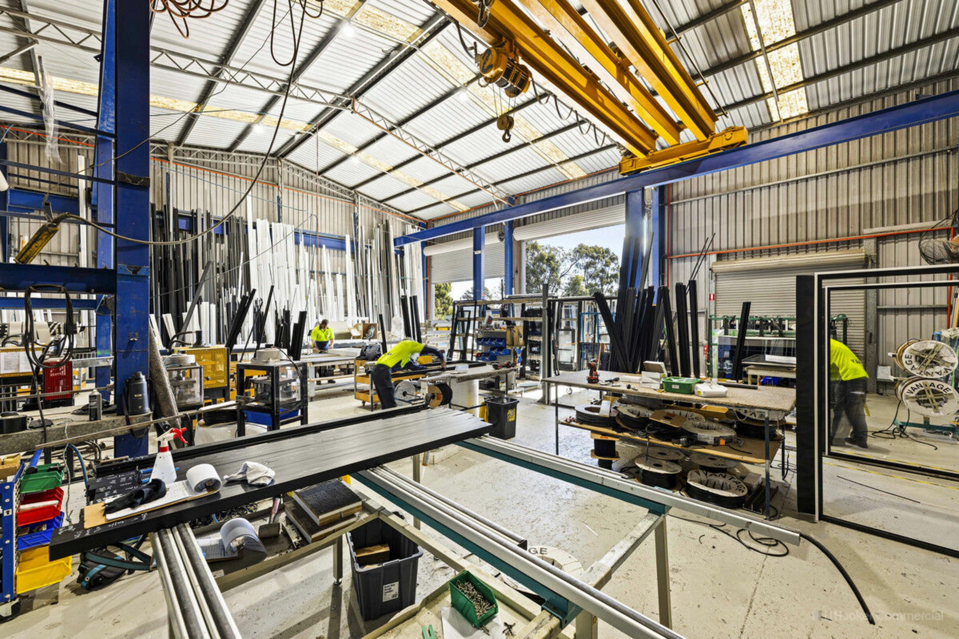 The property features a 589 sqm• high-clearance, clear span warehouse with attached offices, staffroom, amenities block and is equipped with an overhead crane, enhancing operational efficiency and manufacturing processes.