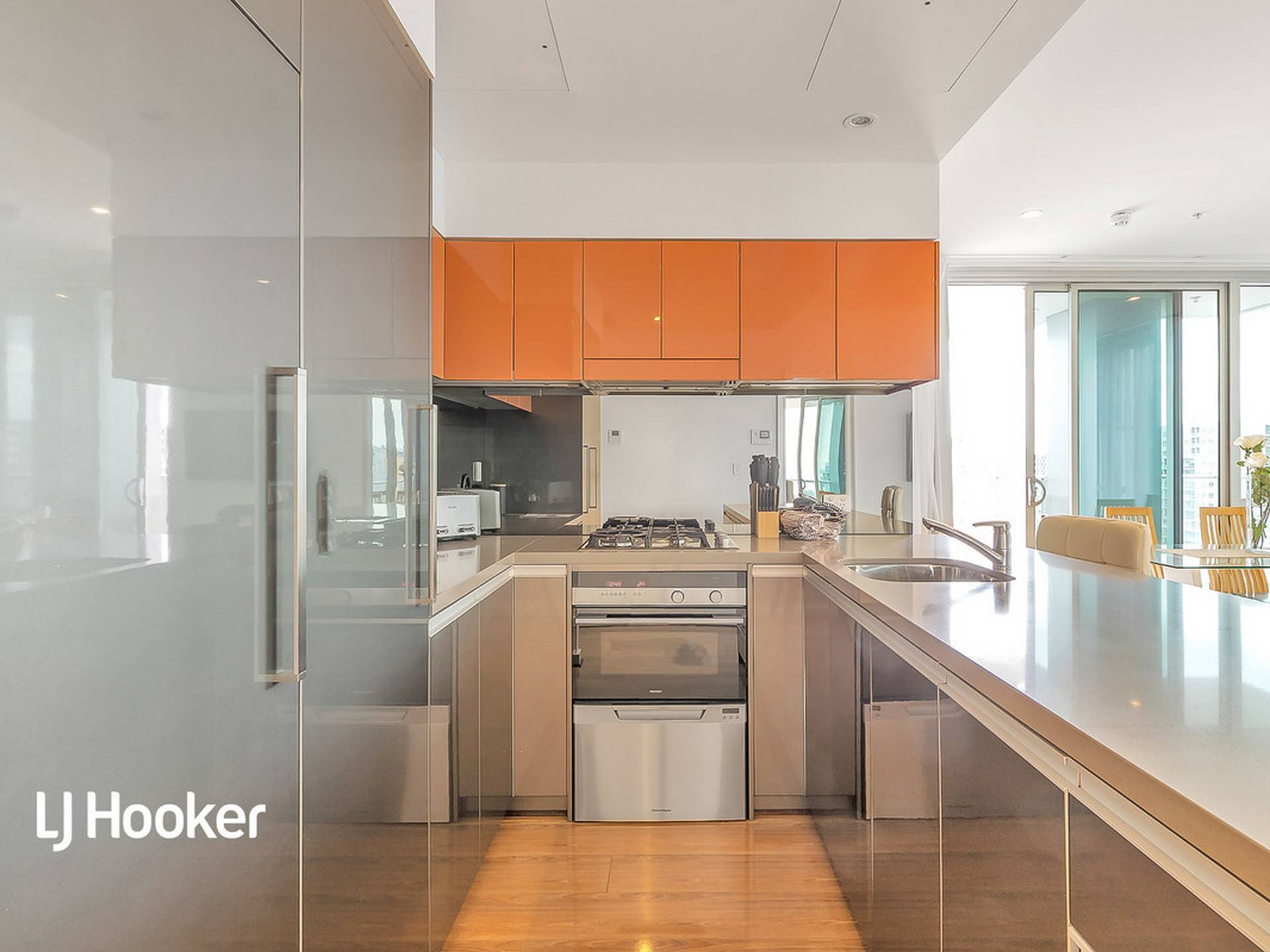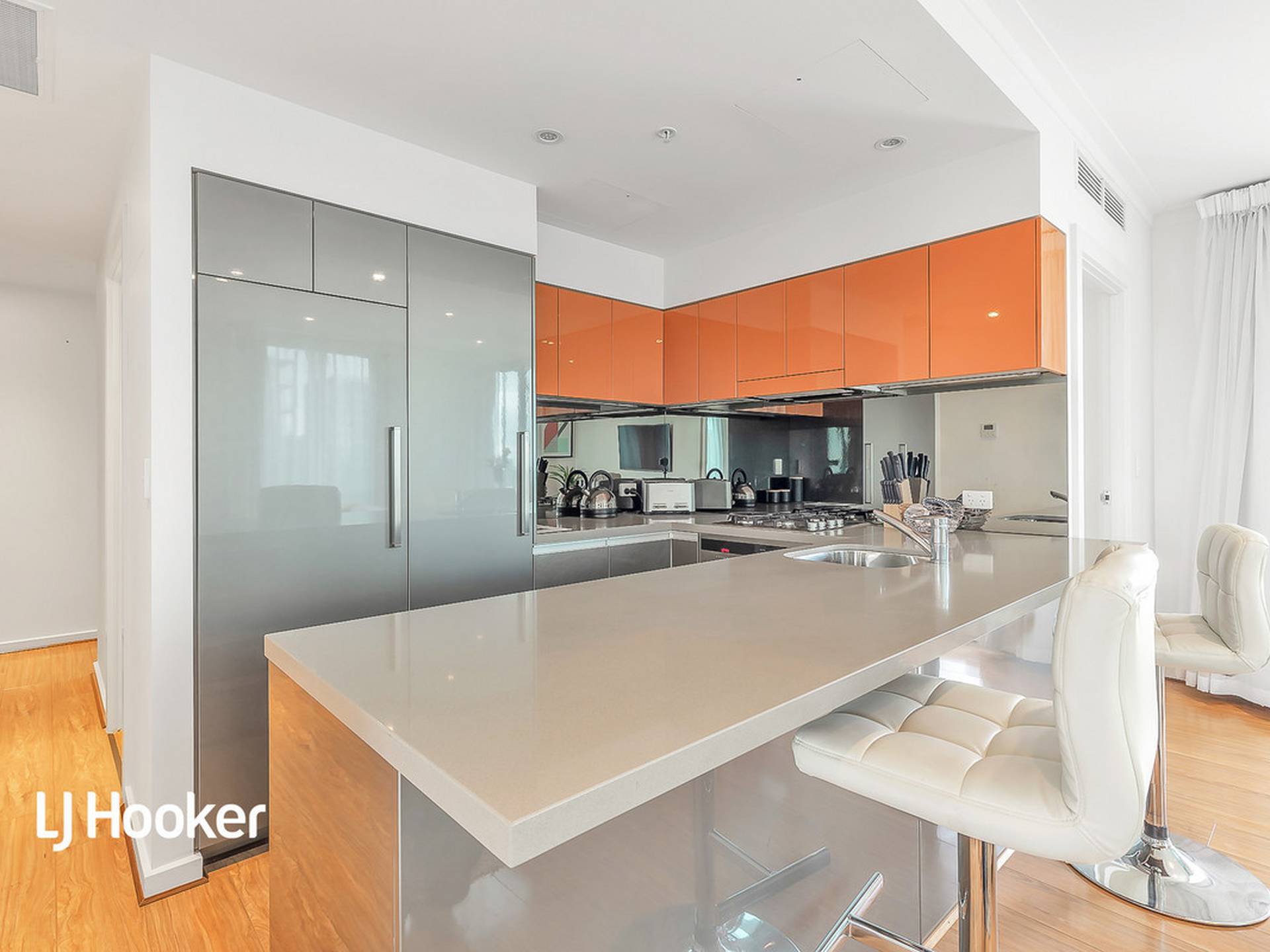 • Modern kitchen with Fisher and Paykel fridge, dishwasher and gas cooktop, and gorgeous ceaserstone benchtops