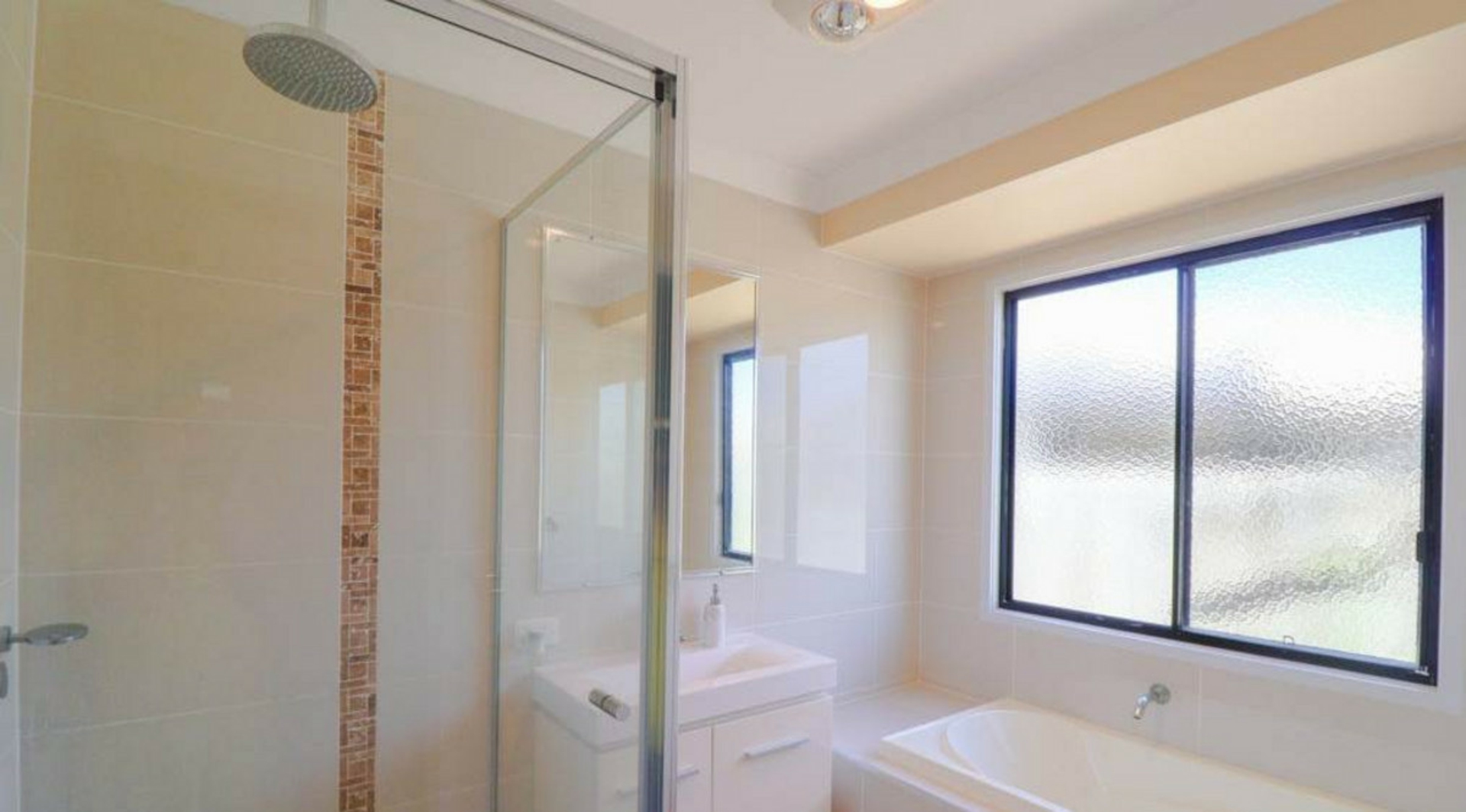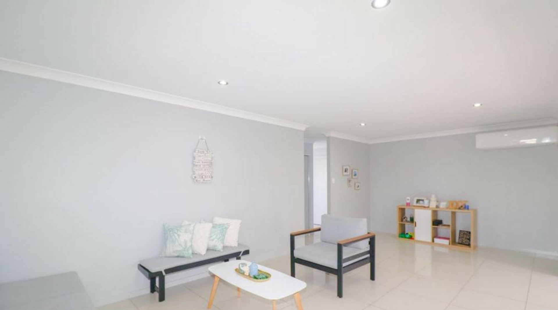 The home offers four well-sized bedrooms, all with built-in wardrobes and ceiling fans. The master bedroom is complete with air-conditioning and a private ensuite, while the main bathroom features a separate shower, bathtub and modern vanity � perfect for busy households.