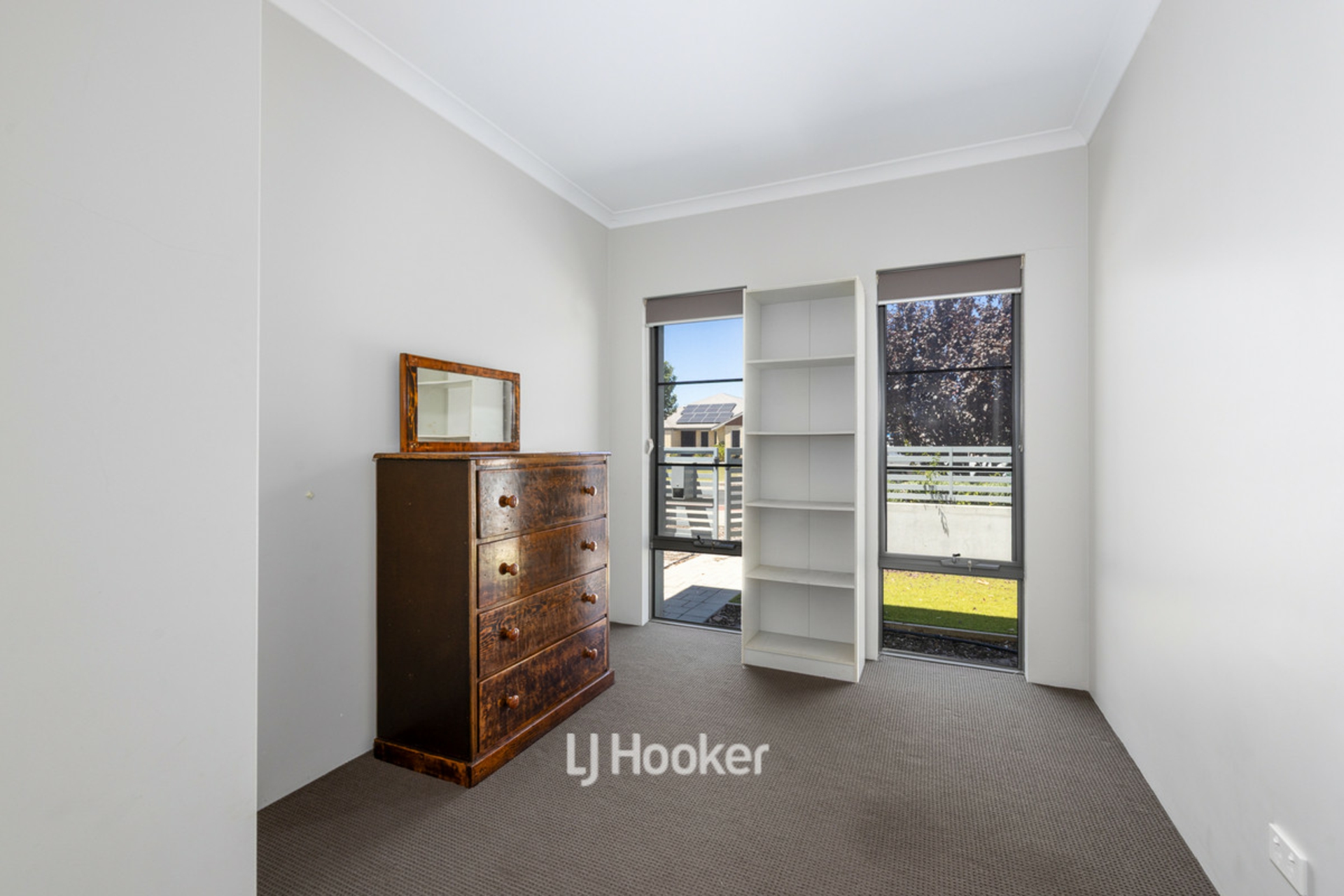 Designed with practicality in mind, the home features high ceilings, neutral tones, and wheelchair-accessible doorways, creating a spacious and functional layout. The open plan living and dining area flows seamlessly through double sliding doors to a private courtyard, perfect for indoor-outdoor living.