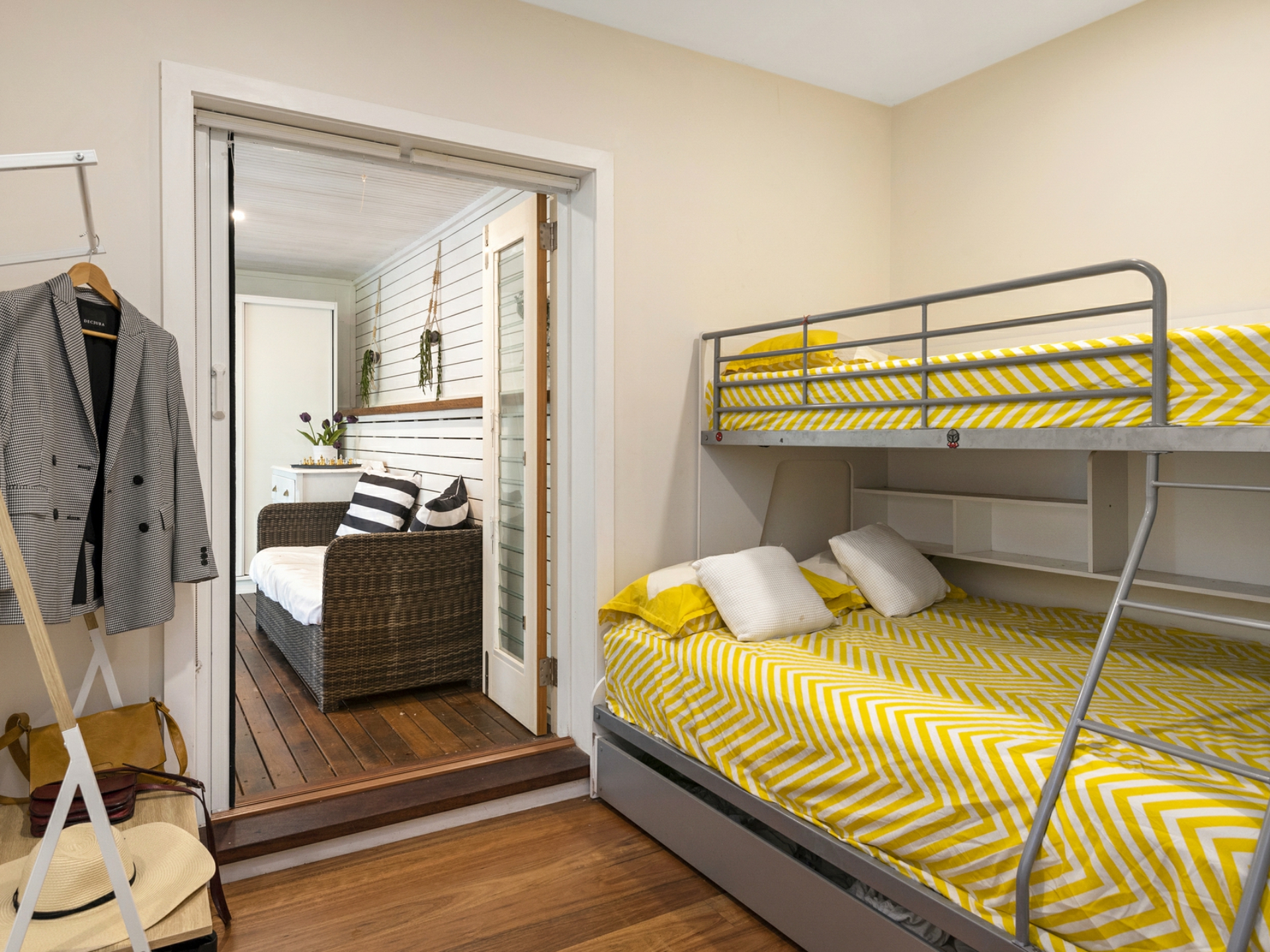 - Spacious bedroom that opens out onto deck