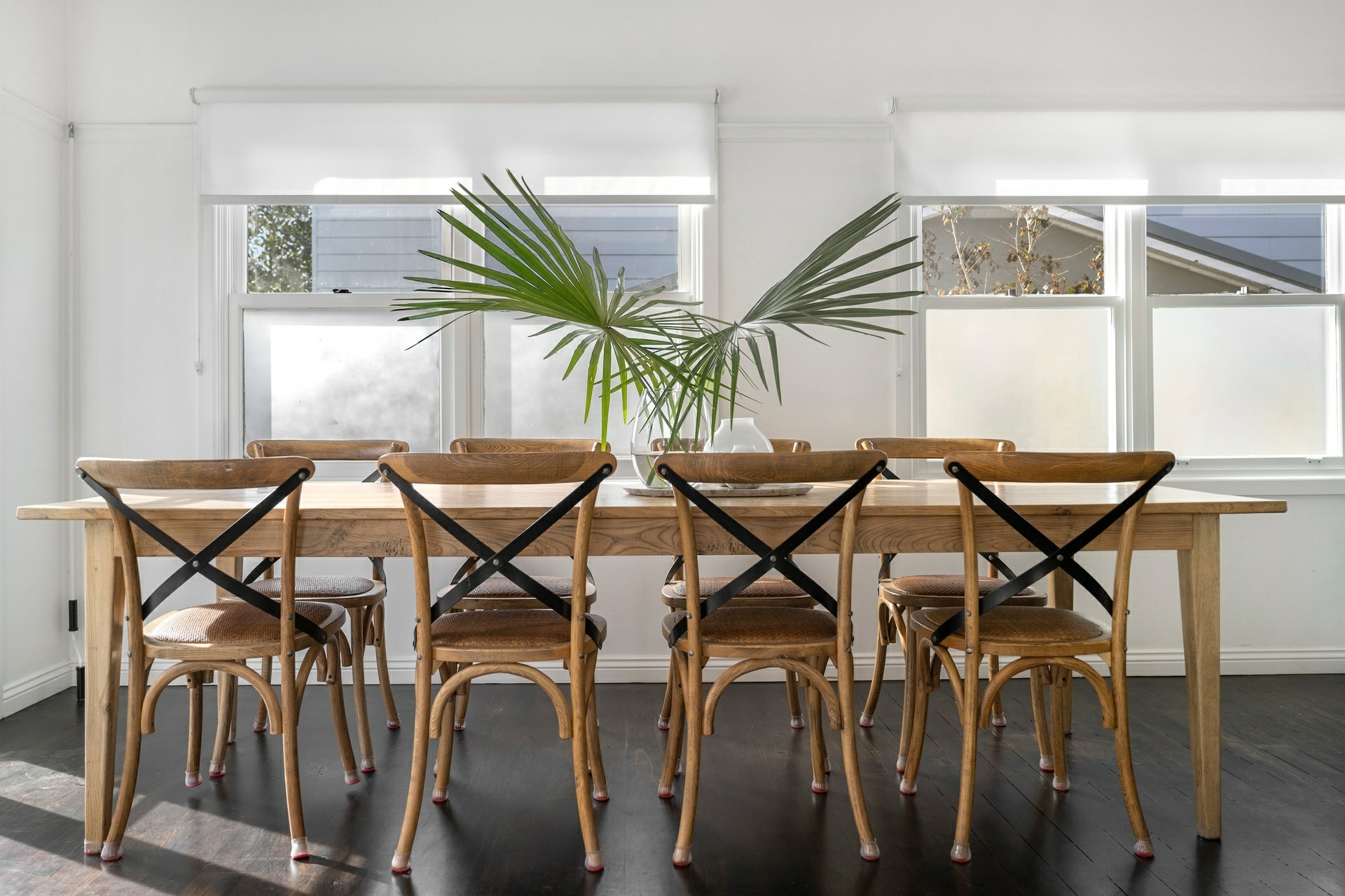 - Crisp, white-themed interiors blanketed with rich hardwood floors