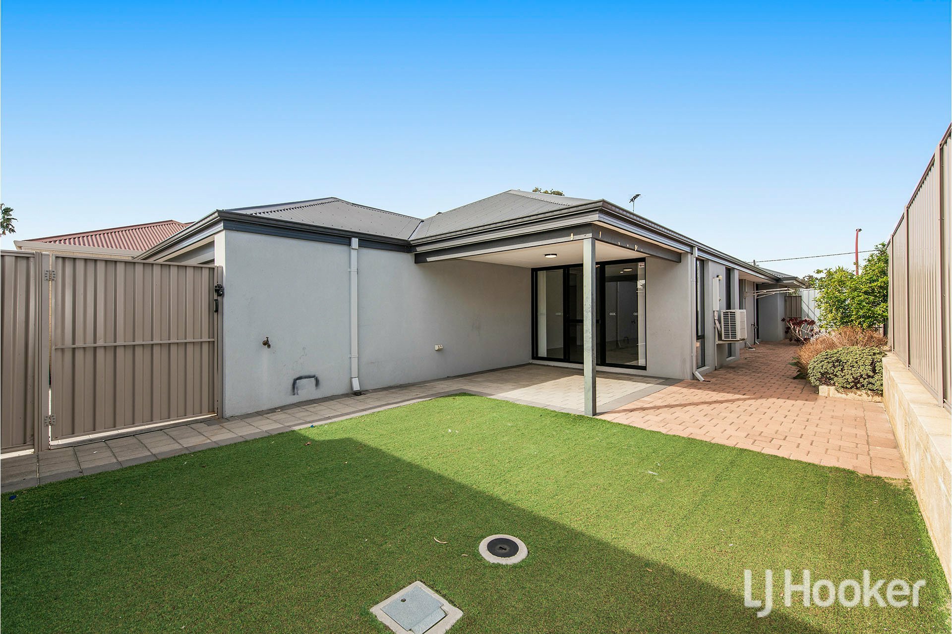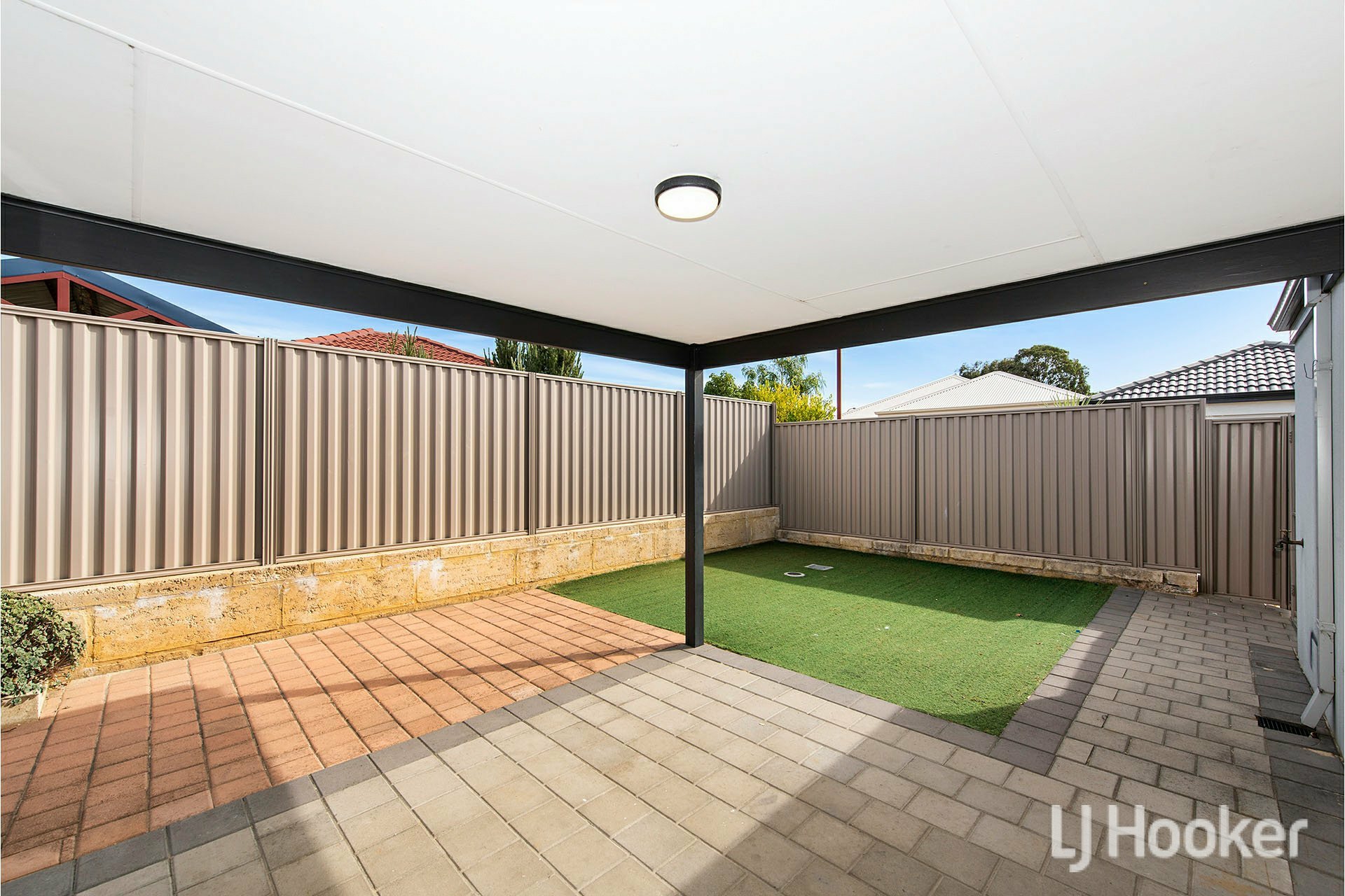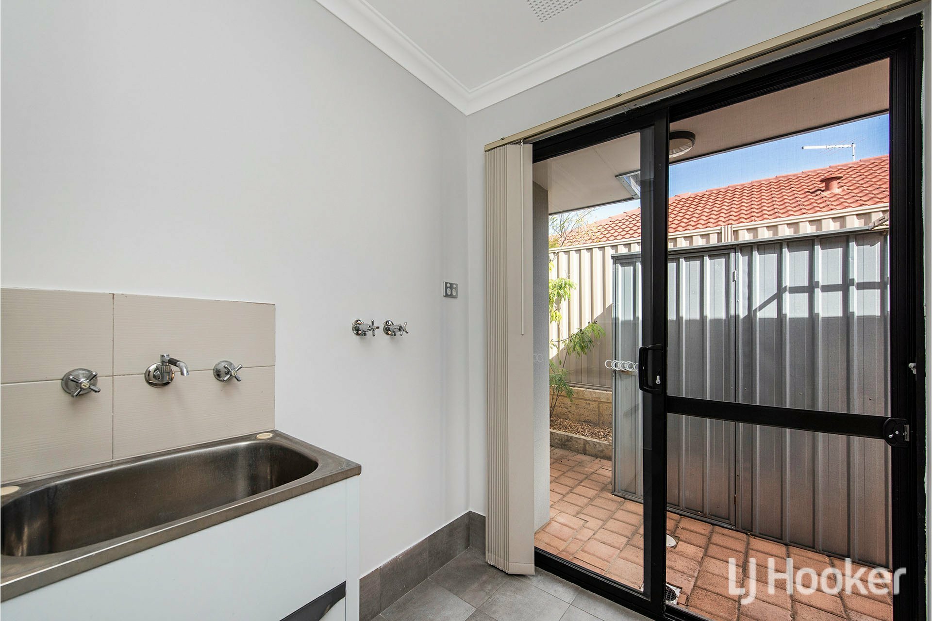 Outside, the low-maintenance backyard offers a perfect spot for relaxation or outdoor activities.