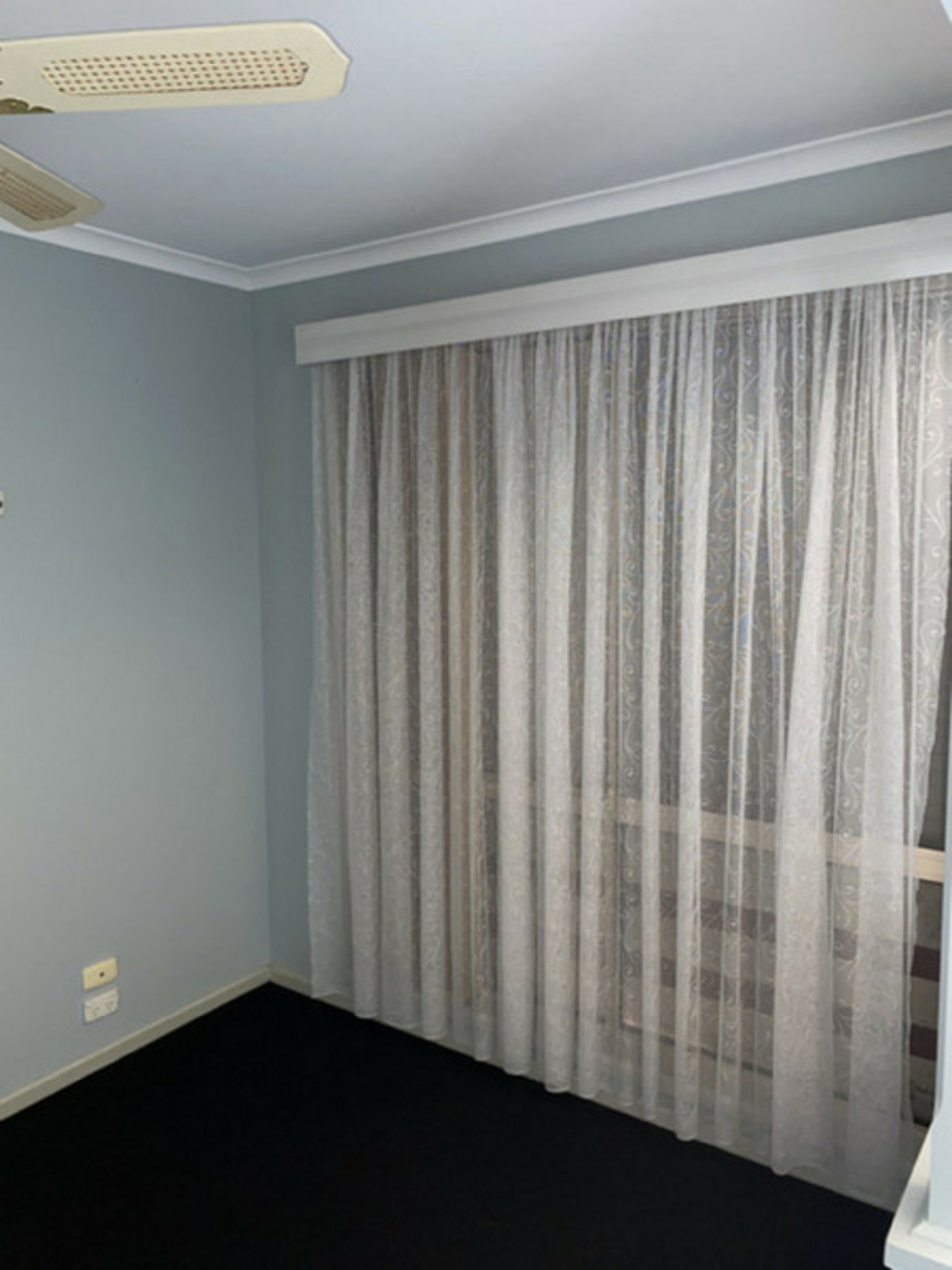 - 2 generously sized bedrooms, both with ceiling fans, master has a good size Robe, with carpeted bedrooms.