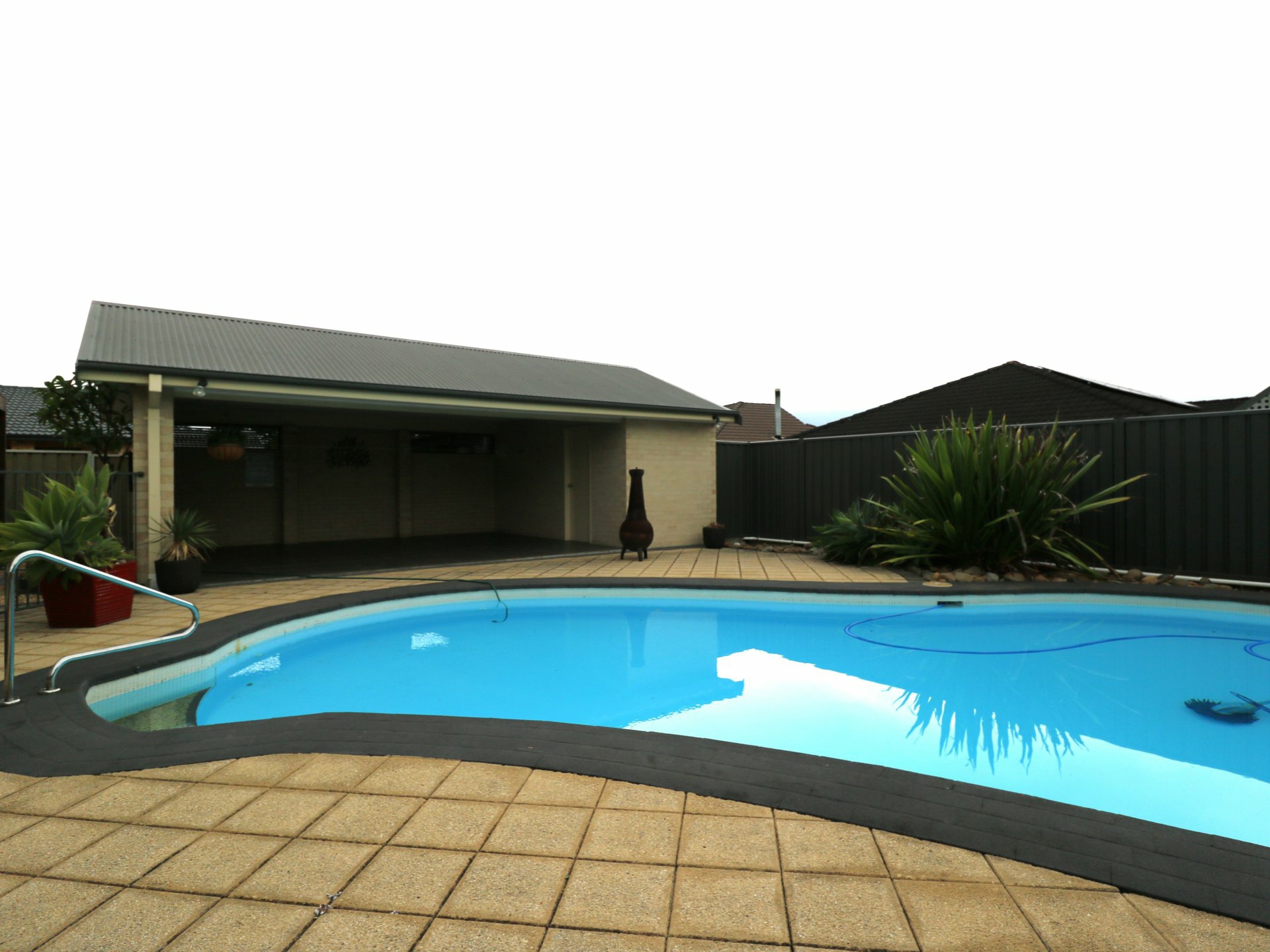 The in-ground pool boasts a large undercover entertaining area surrounded by beautifully maintained gardens.