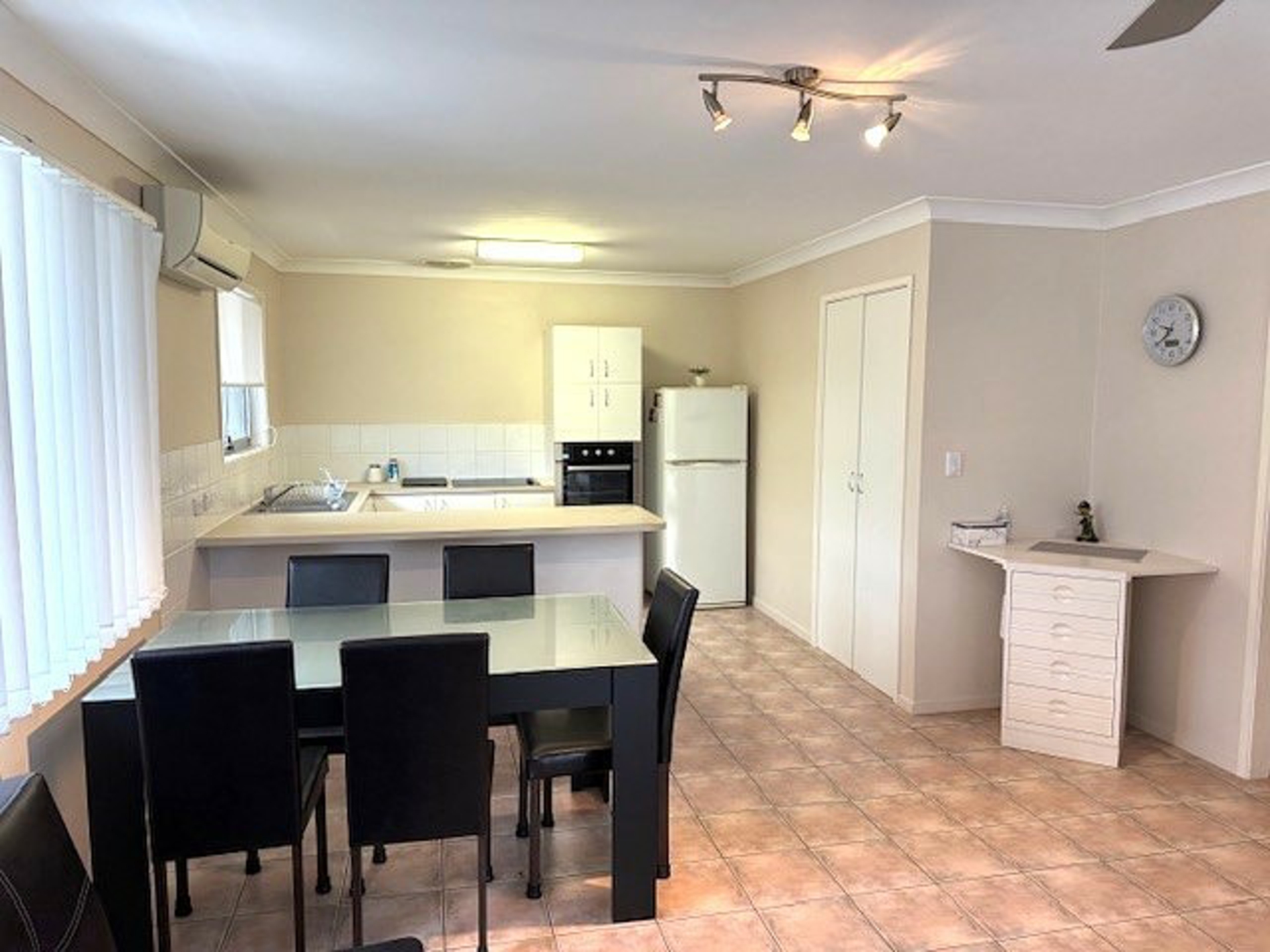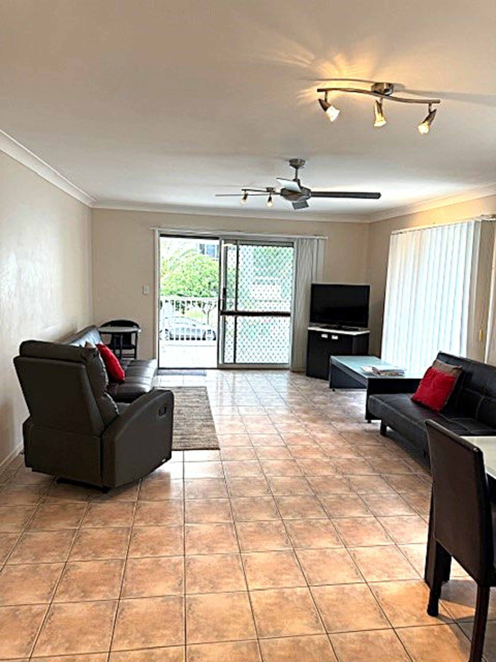 - Air-conditioned living areas and ceiling fans throughout