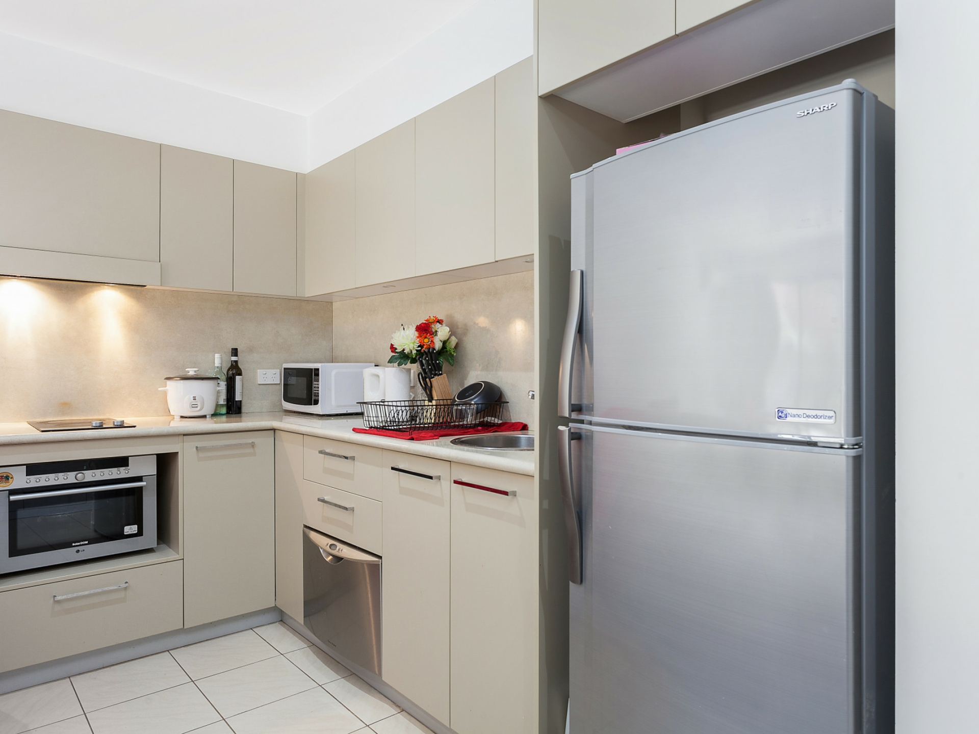 Filled with natural light and benefiting from cross-ventilation, the apartment features an open-plan living and kitchen area that flows seamlessly to a large, enclosed courtyard surrounded by established greenery. This private outdoor space is ideal for relaxing or entertaining year-round.