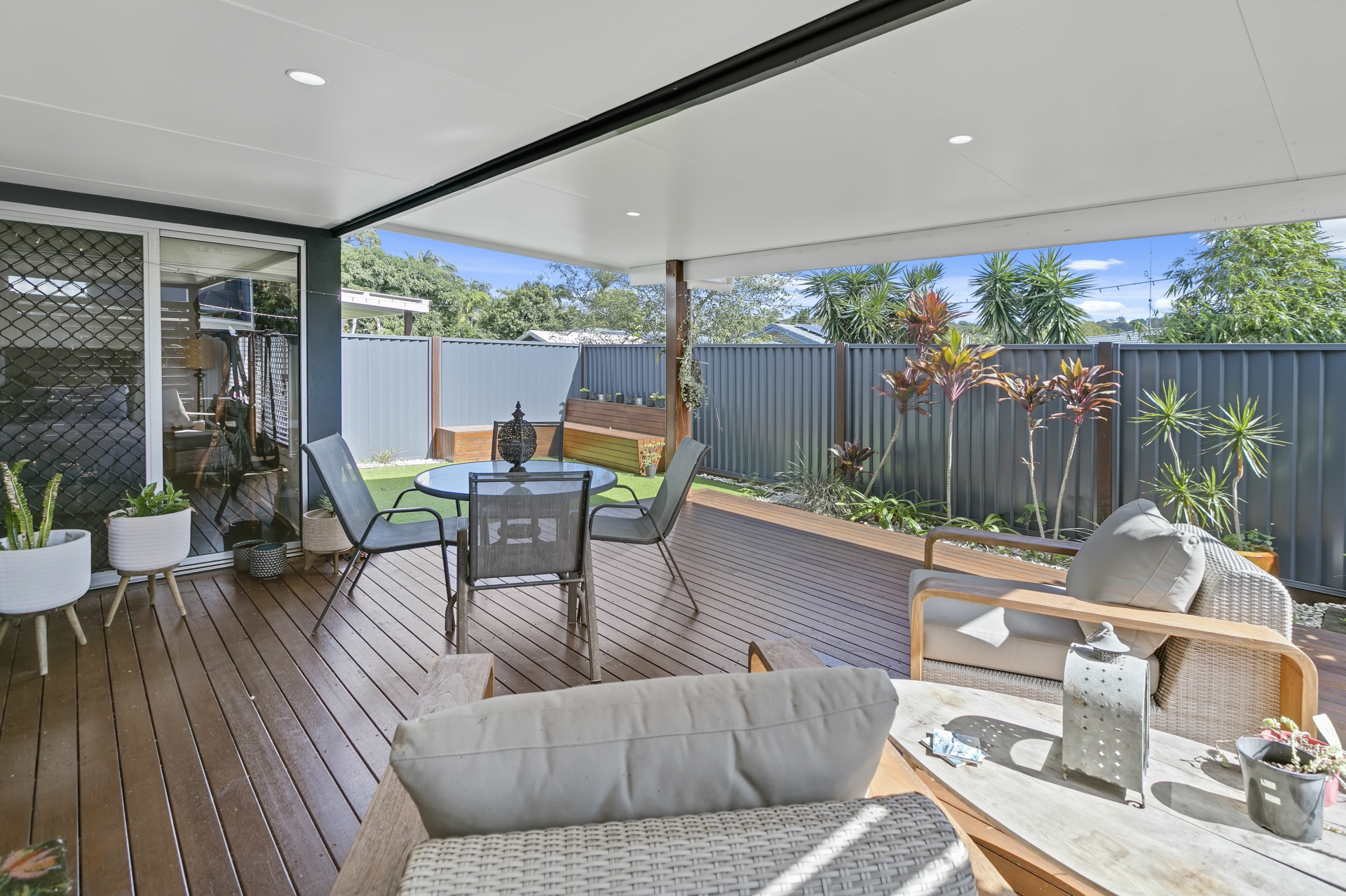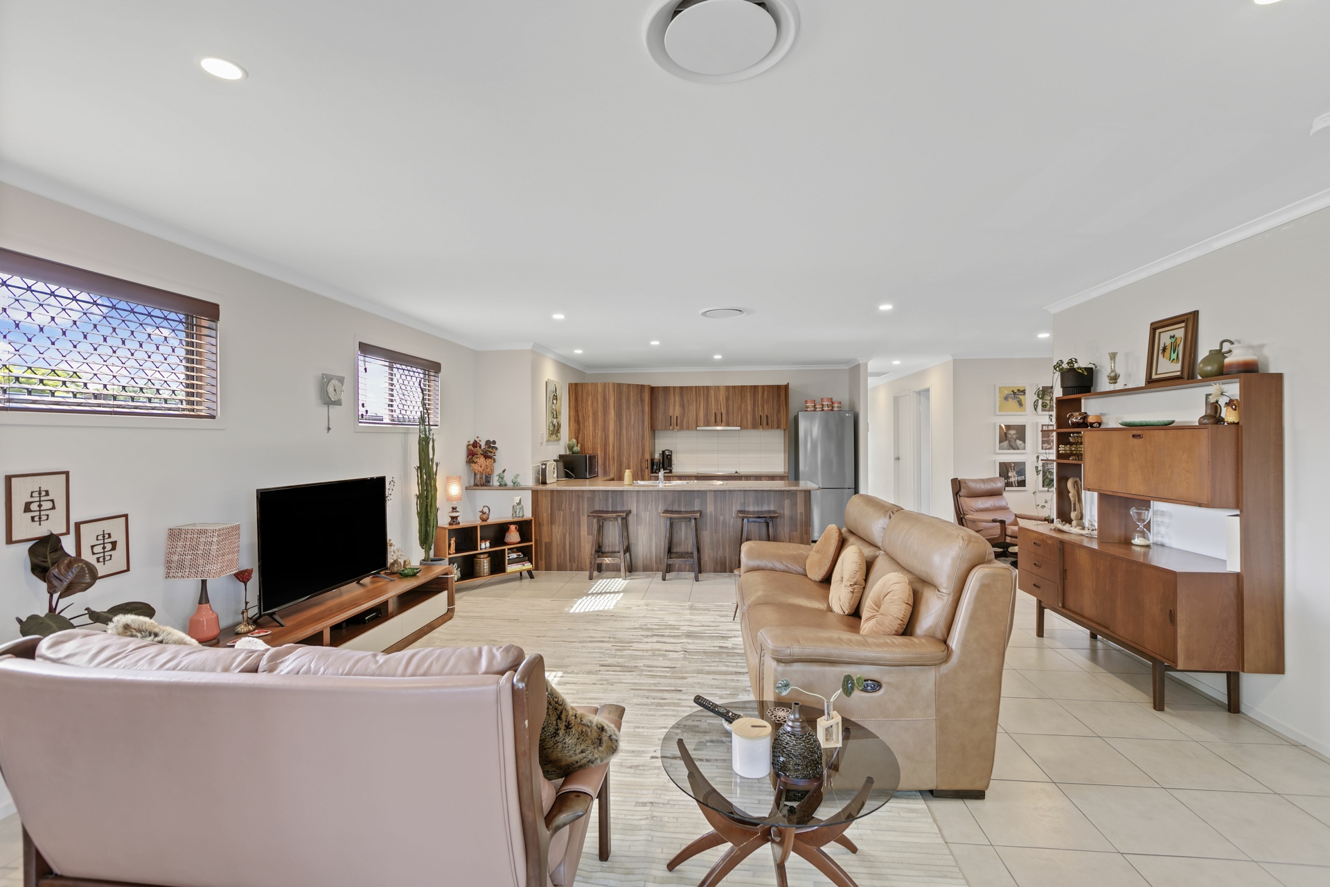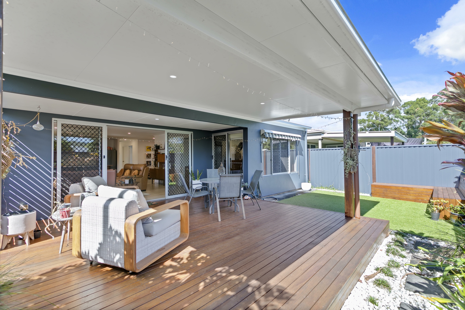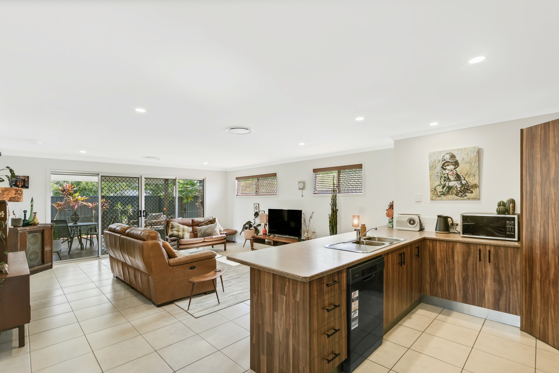 • Open plan living area opens out to undercover entertaining and timber deck