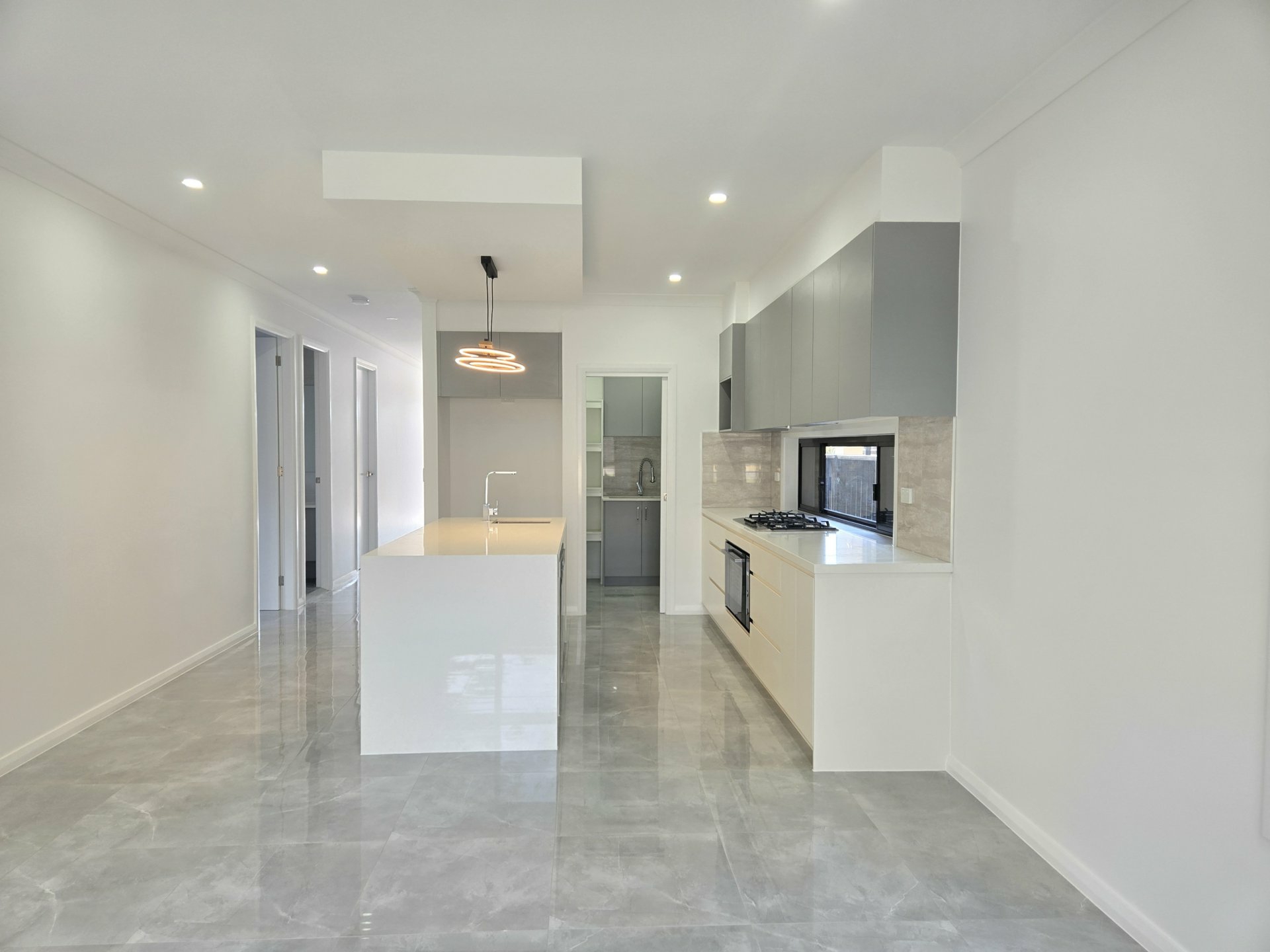 + Modern island kitchen with butler’s pantry and gas cooktops