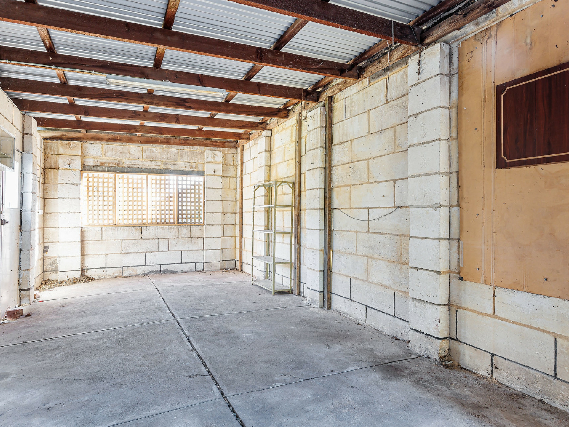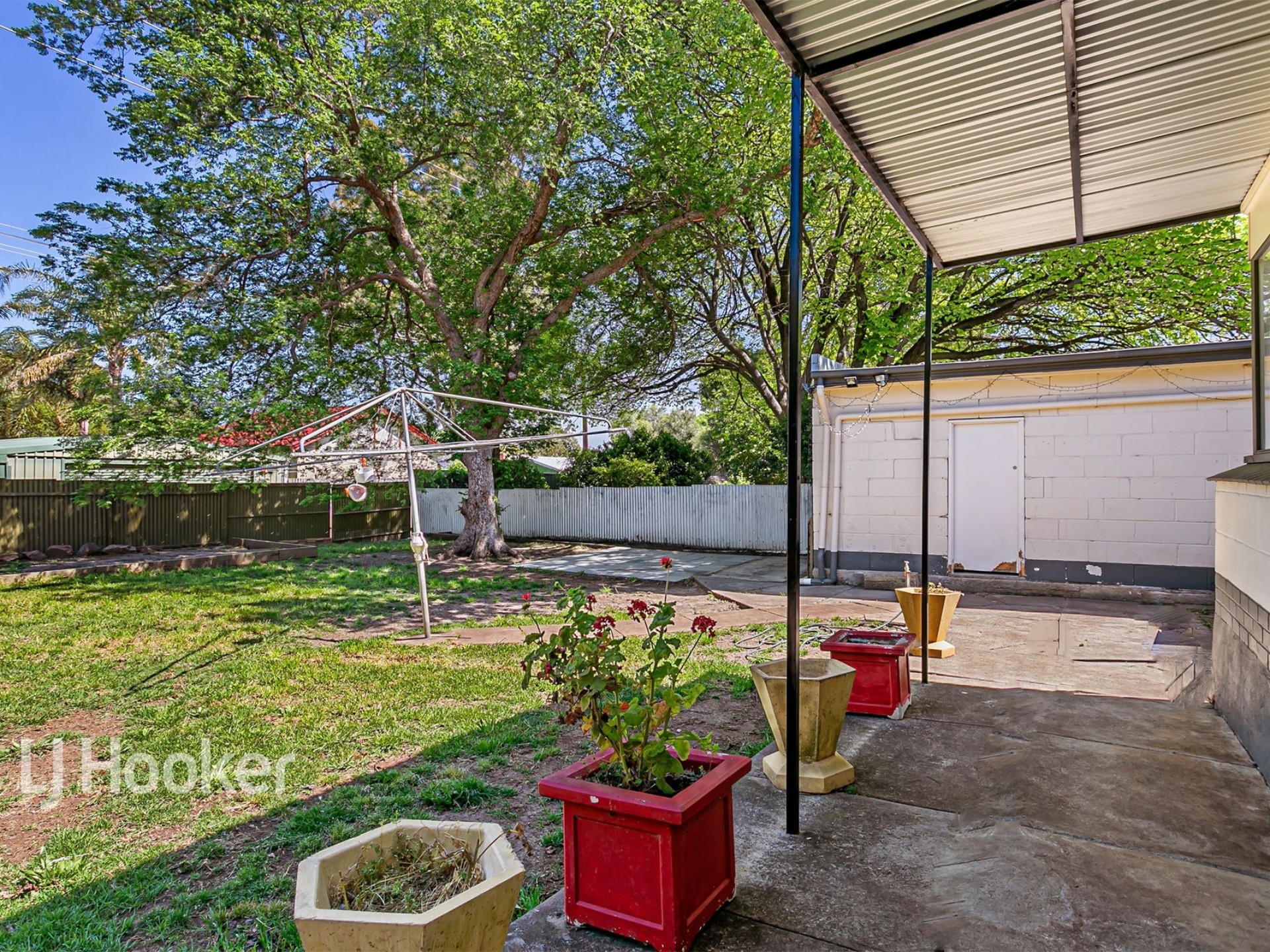 Large back yard with a secure shed