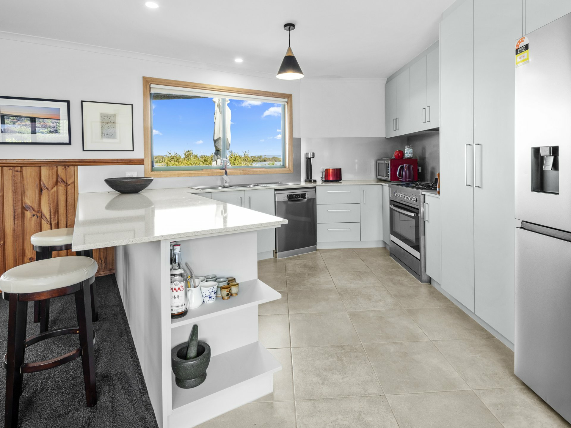 This beautifully appointed partially furnished three-bedroom, two-bathroom home embodies relaxed seaside living. Off the master bedroom, a luxurious four-person indoor spa provides the perfect retreat after a day on the water. The spacious living areas are designed to capture breathtaking water views, centred around a cozy wood heater that adds warmth and charm. A modern kitchen with gas cooking, a dishwasher, and ample storage caters effortlessly to busy households.