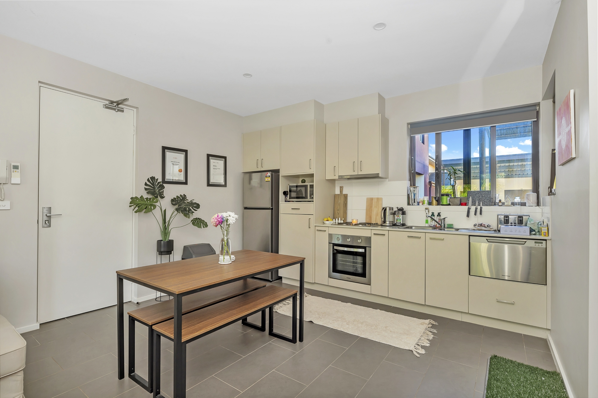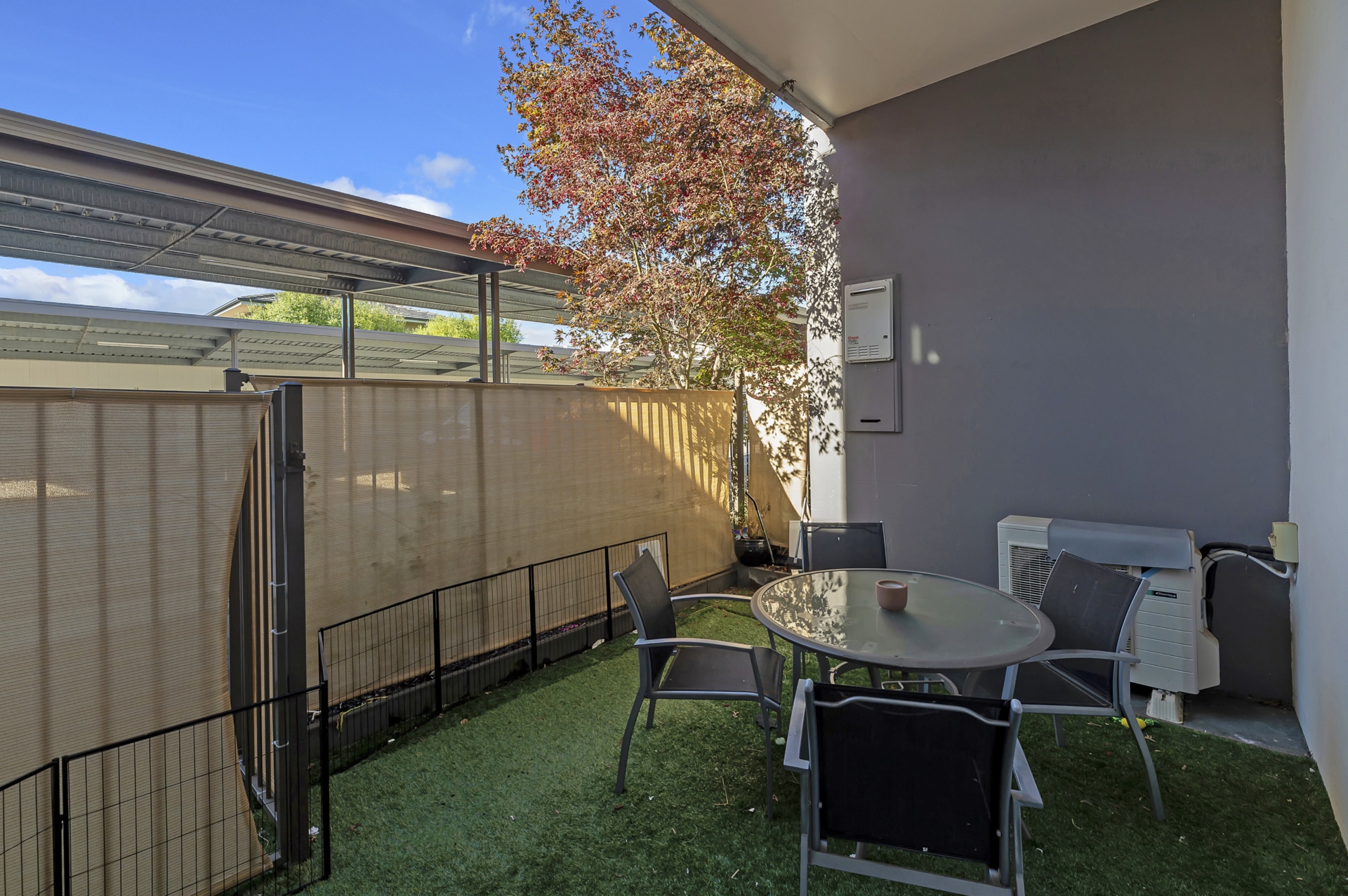 This apartment boasts front and rear courtyards, the home itself is filled with natural light and offers a perfect space to relax in both outdoor areas. The kitchen is modern with dishwasher, there is good sized living and a split system air conditioner provides year round comfort NBN and secure covered parking.