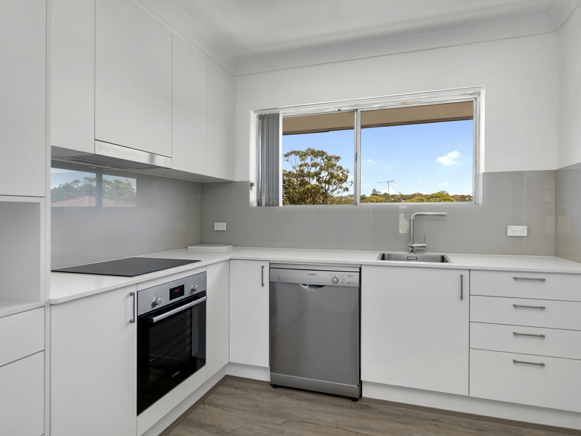 A full length covered entertaining balcony is superb for alfresco dining whilst taking in the views. An open plan and spacious living area is adjoined by a dedicated dining area. A brand new separate kitchen featuring stainless steel Bosch appliances, stone benchtops and glass splash backs will be a delight for the home cook. Internal laundry includes a linen cupboard is adjacent to the kitchen for your convenience and offers plenty of space for a washer and dryer.
