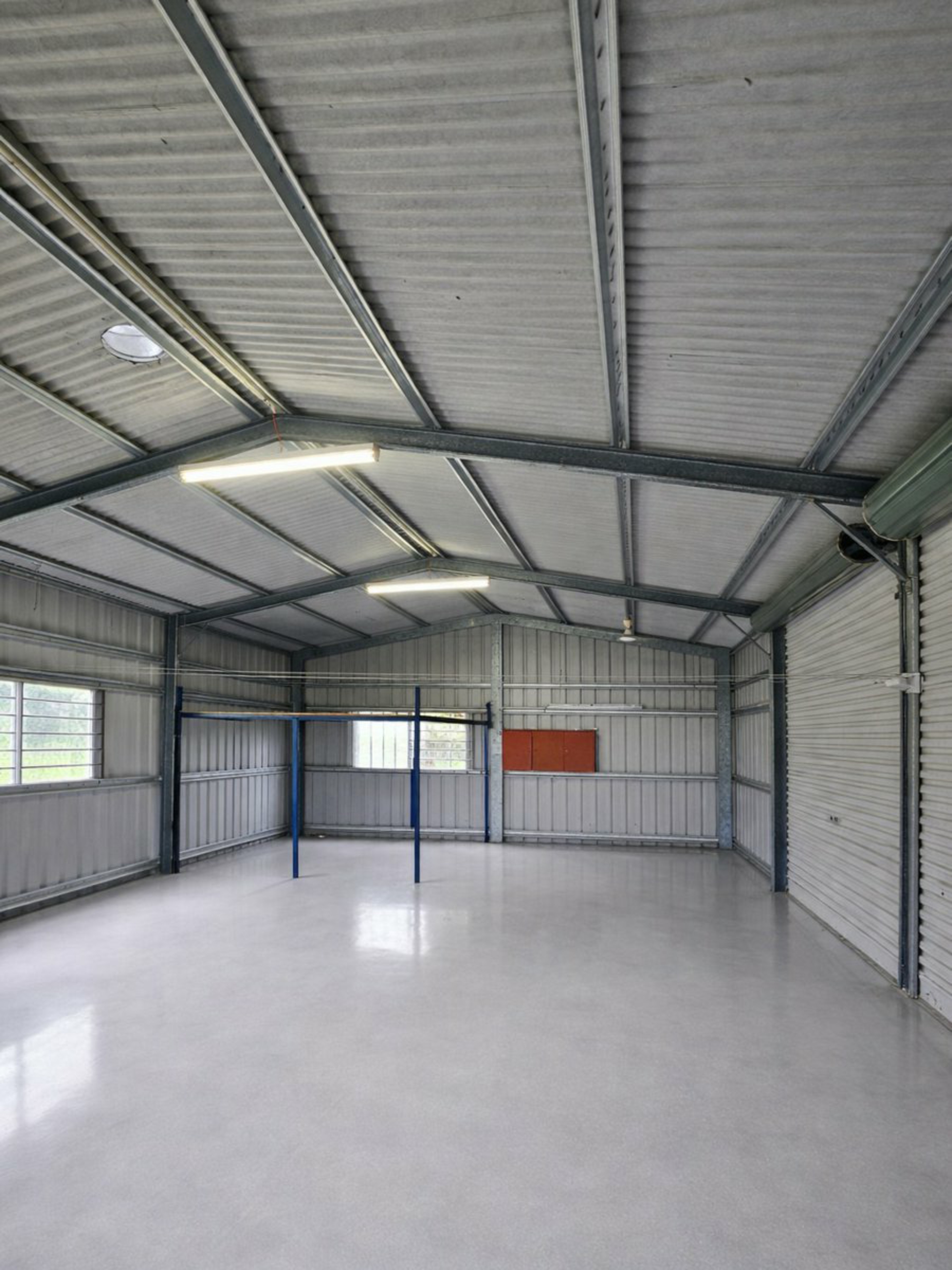 - Huge powered shed with lighting, mezzanine storage and additional shelving
