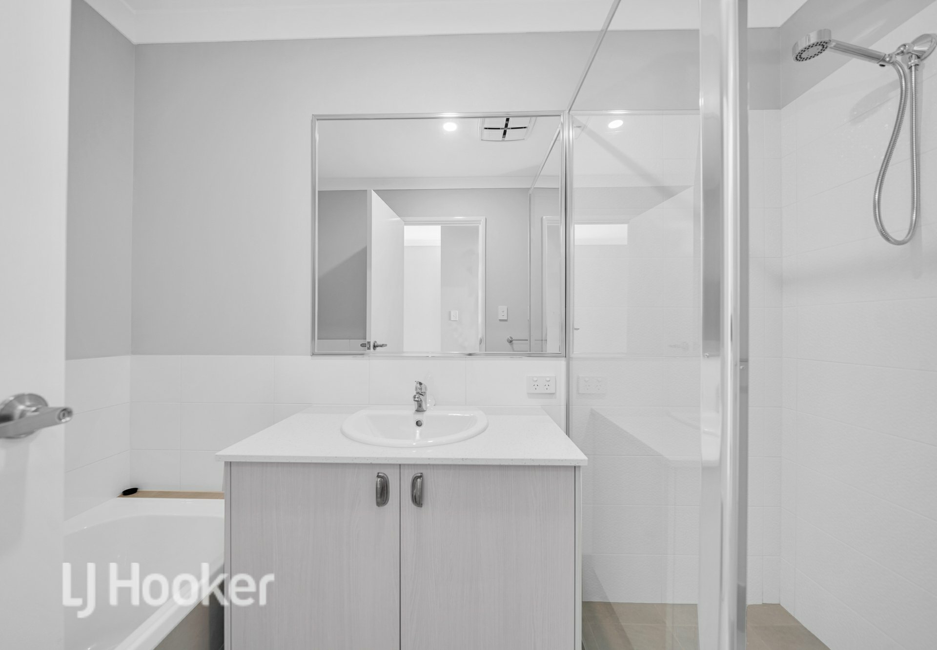 The home features two full bathrooms, both stylishly designed and fitted with modern fixtures. The main bathroom is conveniently located to service the two additional bedrooms, while the ensuite bathroom offers privacy for the master bedroom.