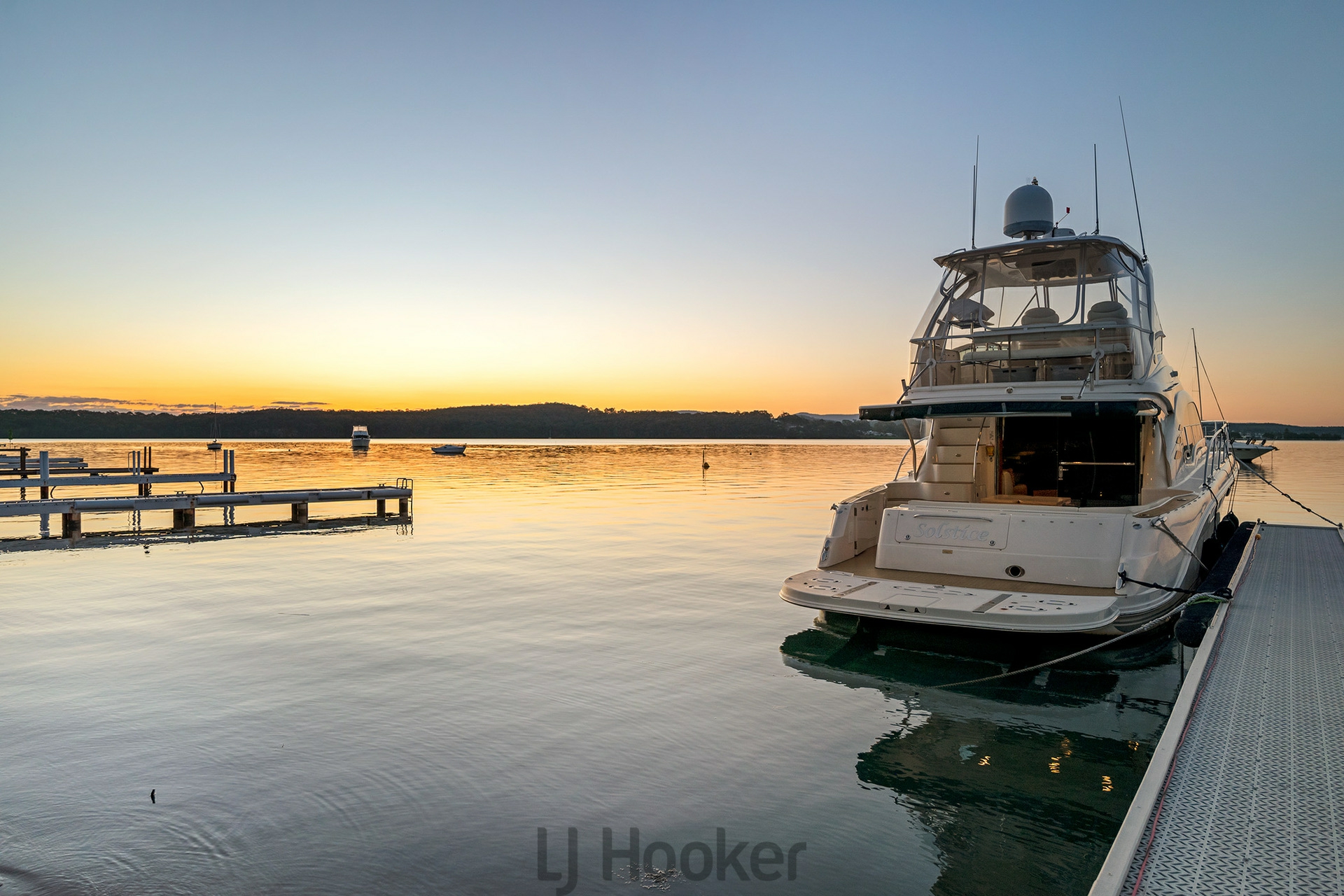 Positioned in one of Lake Macquarie's most tightly held waterfront pockets, this exceptional executive residence offers a rare deep-water frontage complete with a private jetty, slipway and magnificent modern boatshed. With level, easy access to the foreshore and breathtaking lake views, this home delivers an unparalleled waterfront lifestyle.