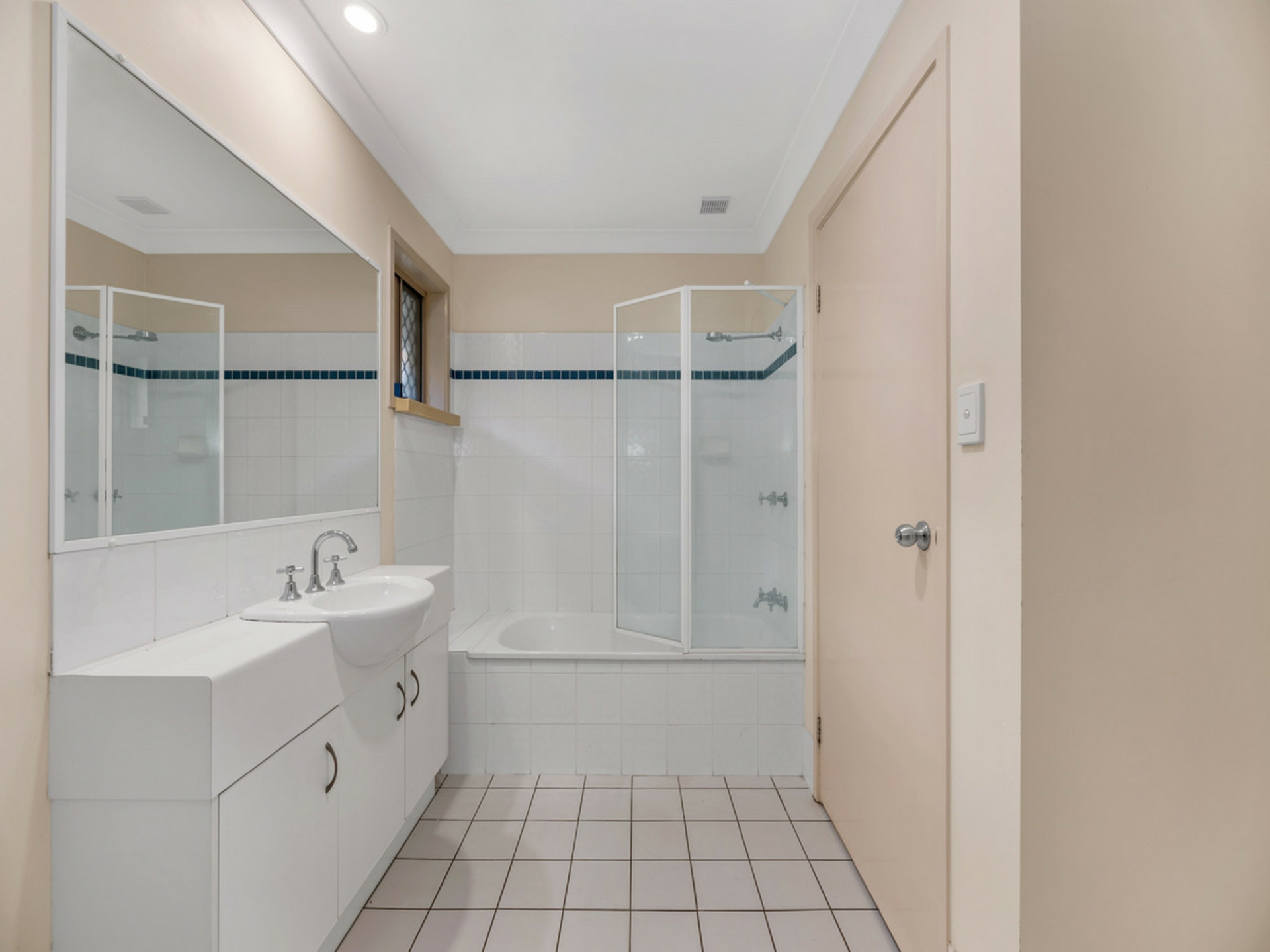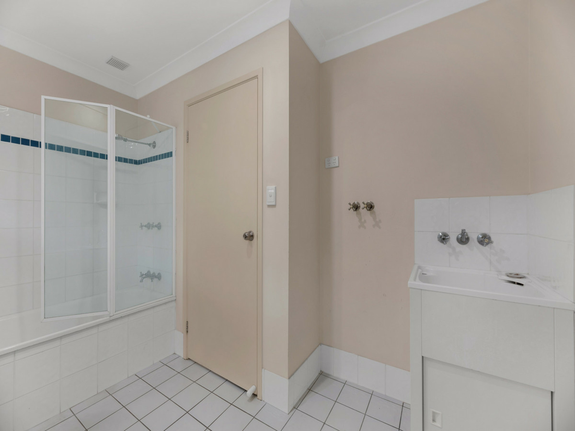 - Large family bathroom with shower over bath and laundry