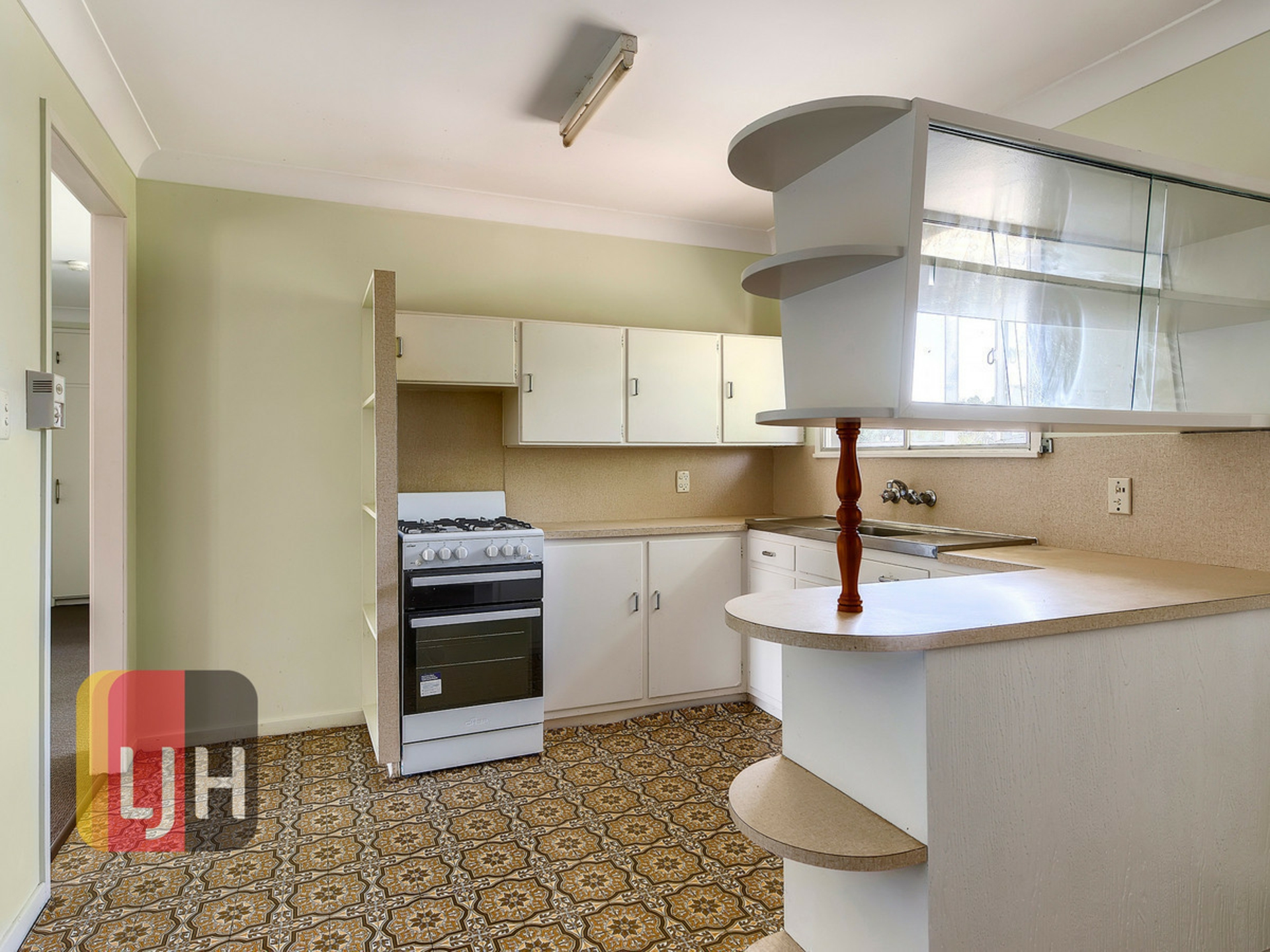- Neat kitchen with plenty of cupboard space and gas cooking