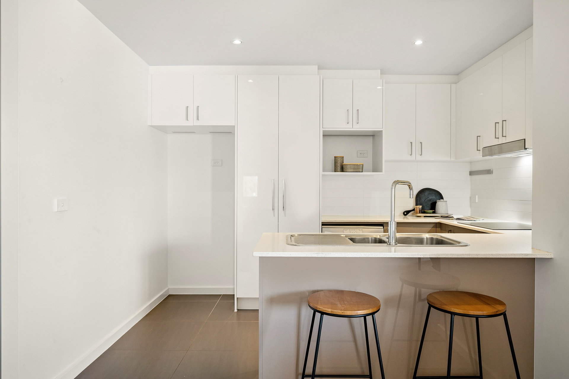 • Large modern kitchen with stone benchtops, breakfast bar, ample storage, and includes dishwasher