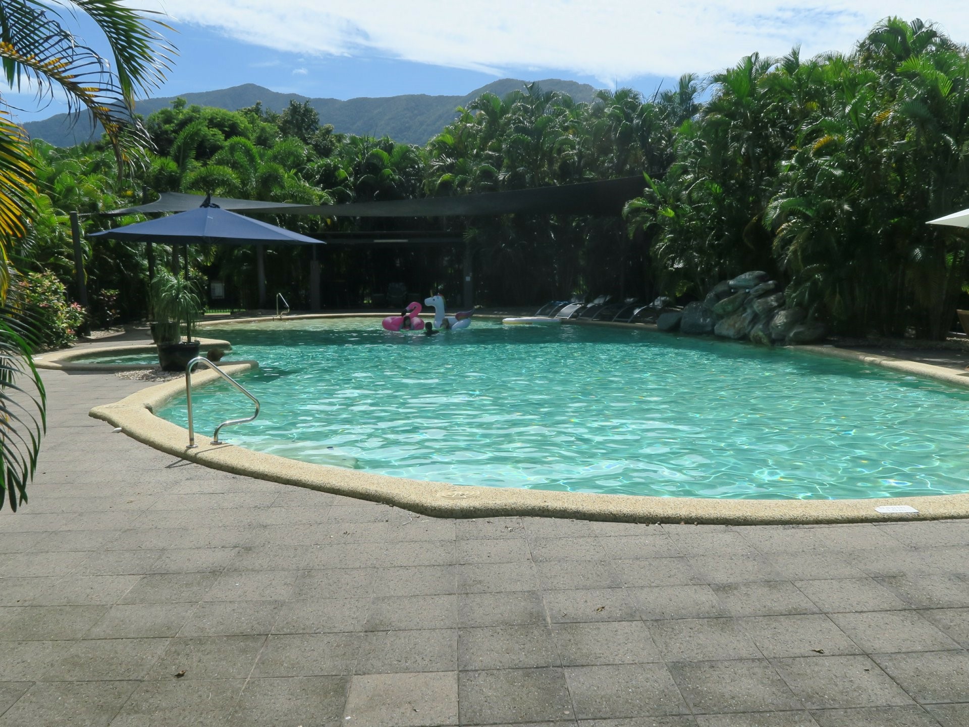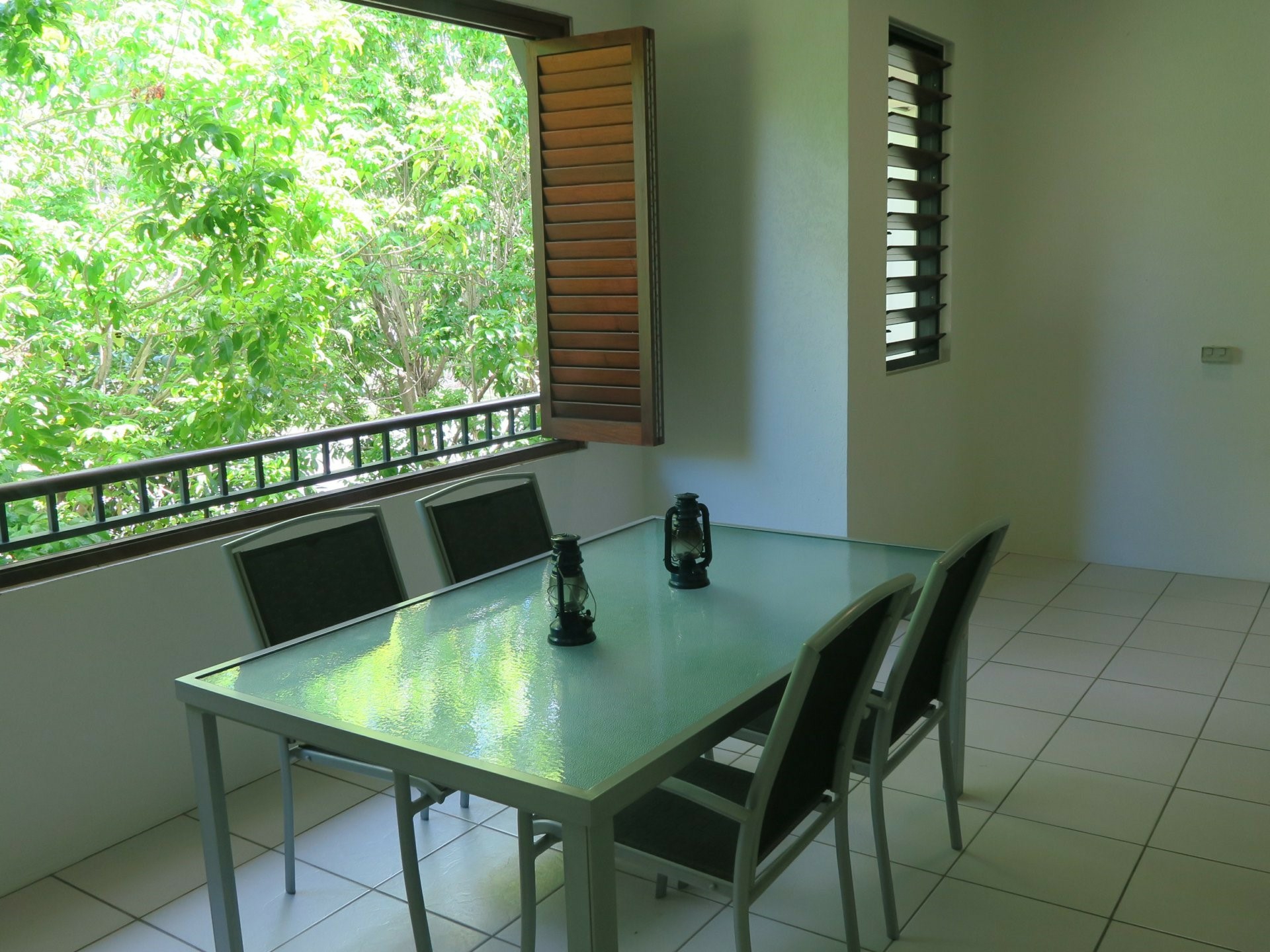 - Spacious rear patio and smaller front balcony overlooking the pool