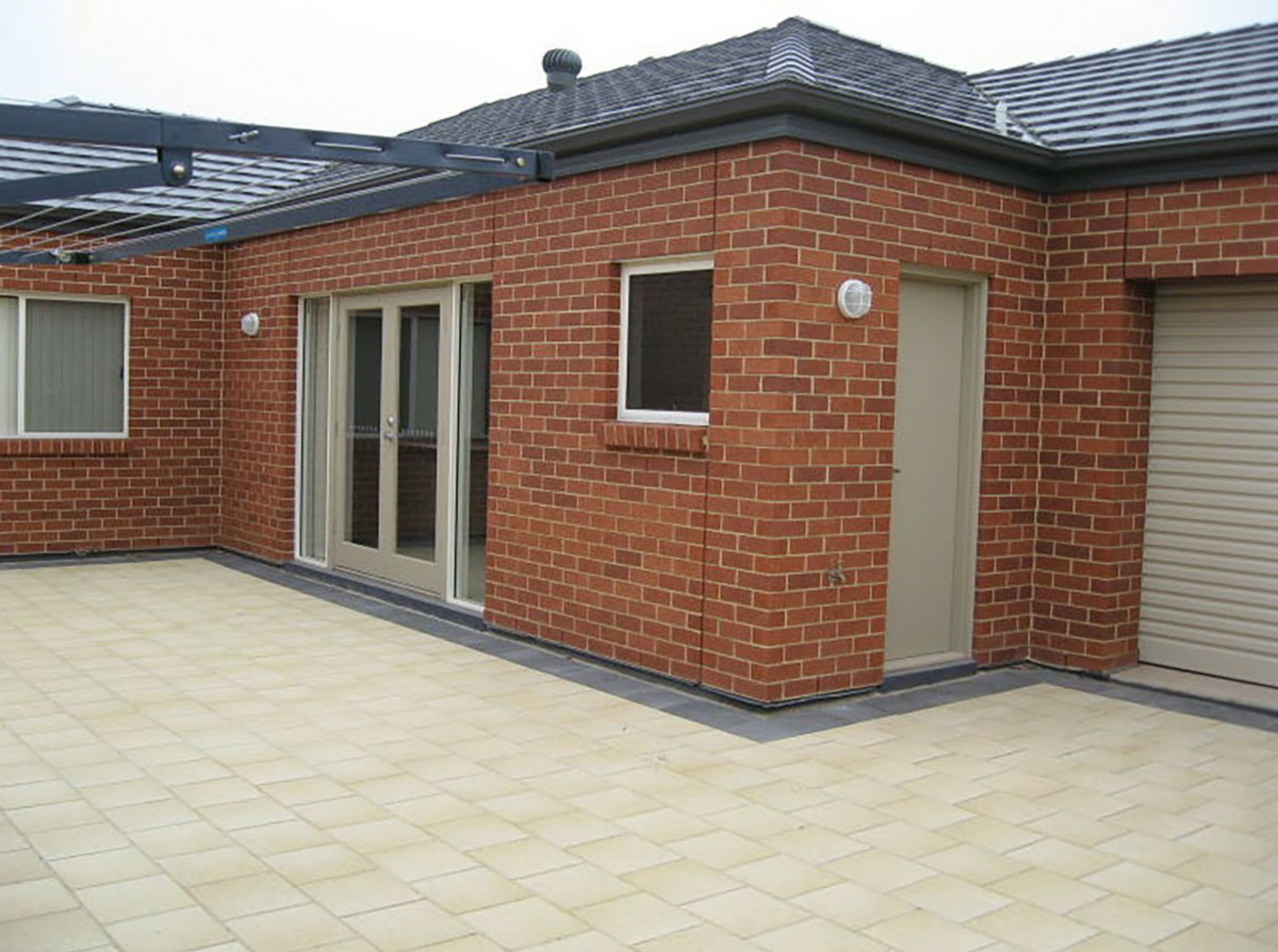 •A tidy courtyard with a pergola