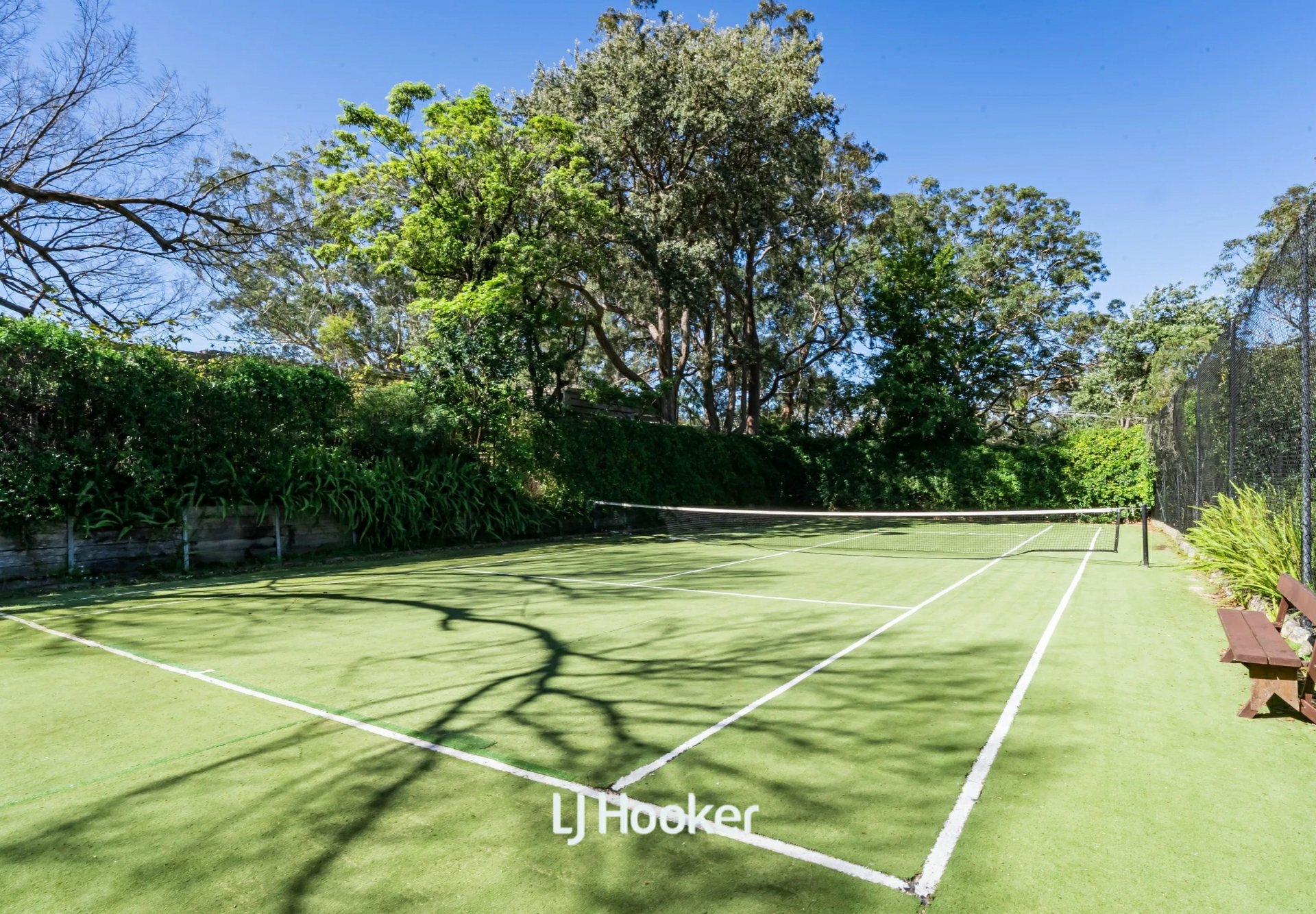 The main residence comprises 4 bedrooms, 3 bathrooms, open plan kitchen and dining, family living area, study and storage room.. A studio or teenage/guest retreat is located above the garage, with its own entrance and balcony overlooking the tennis court.