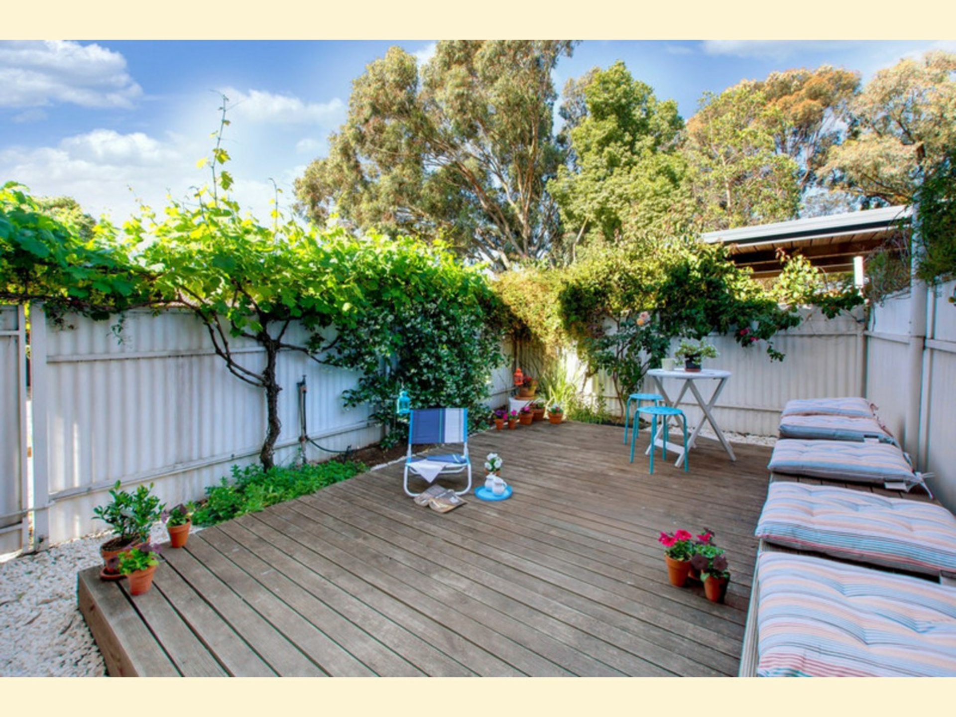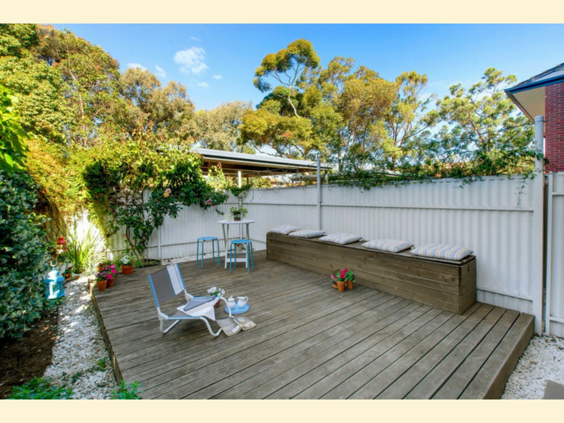 Behind a cool red door are stunning timber floating floorboards and bright, light decor. Kitchen is upgraded with Meiel appliances and the bathroom is stunning. Outdoors is a soothing spot for a soothing cuppa on the relaxing timber decking.