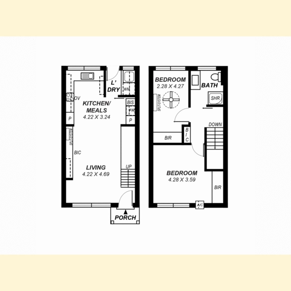 - Two good size bedrooms with built in robes and heat/cooling