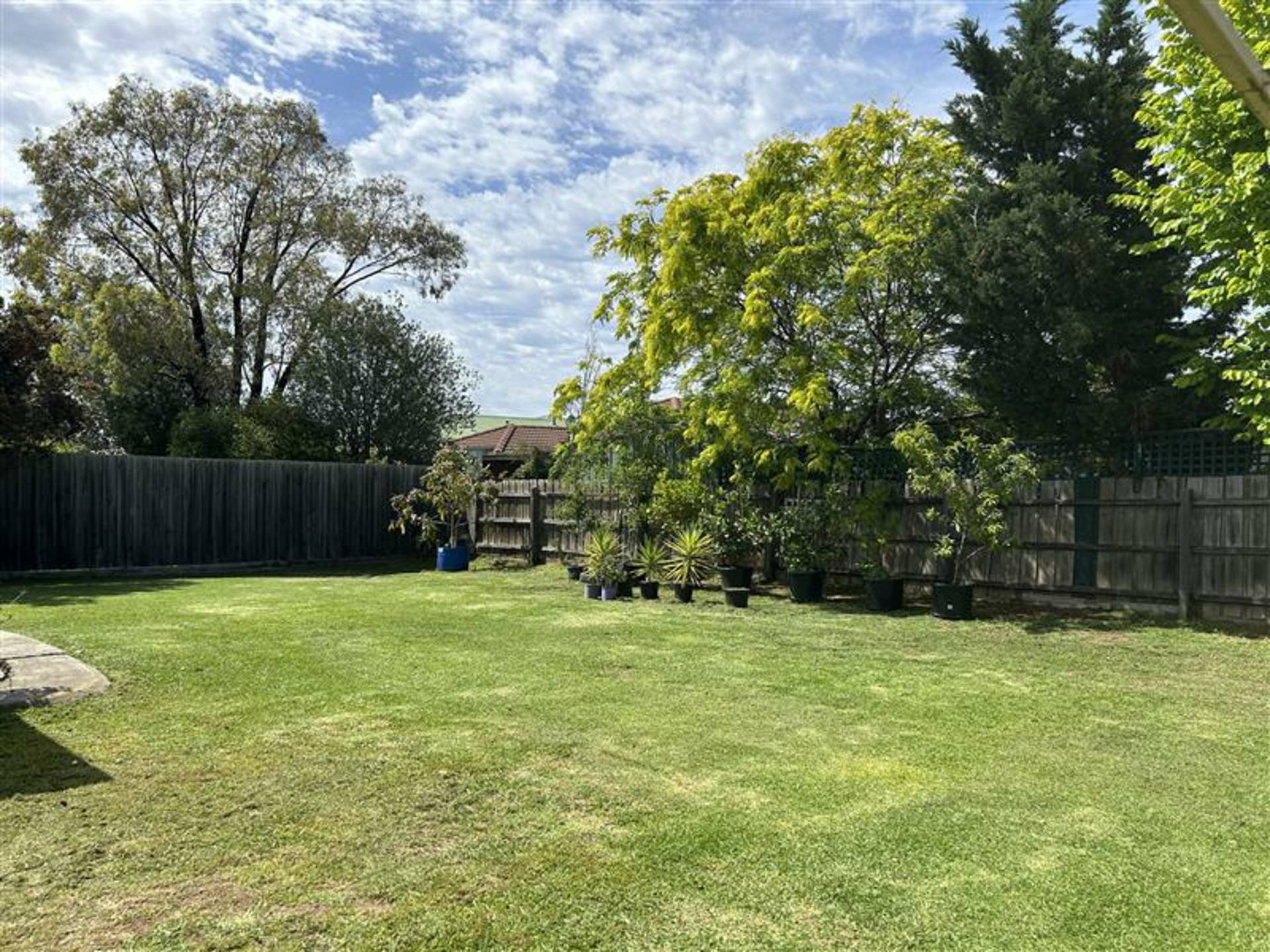 • The backyard and surrounding landscaping offer a practical, low-maintenance outdoor environment.