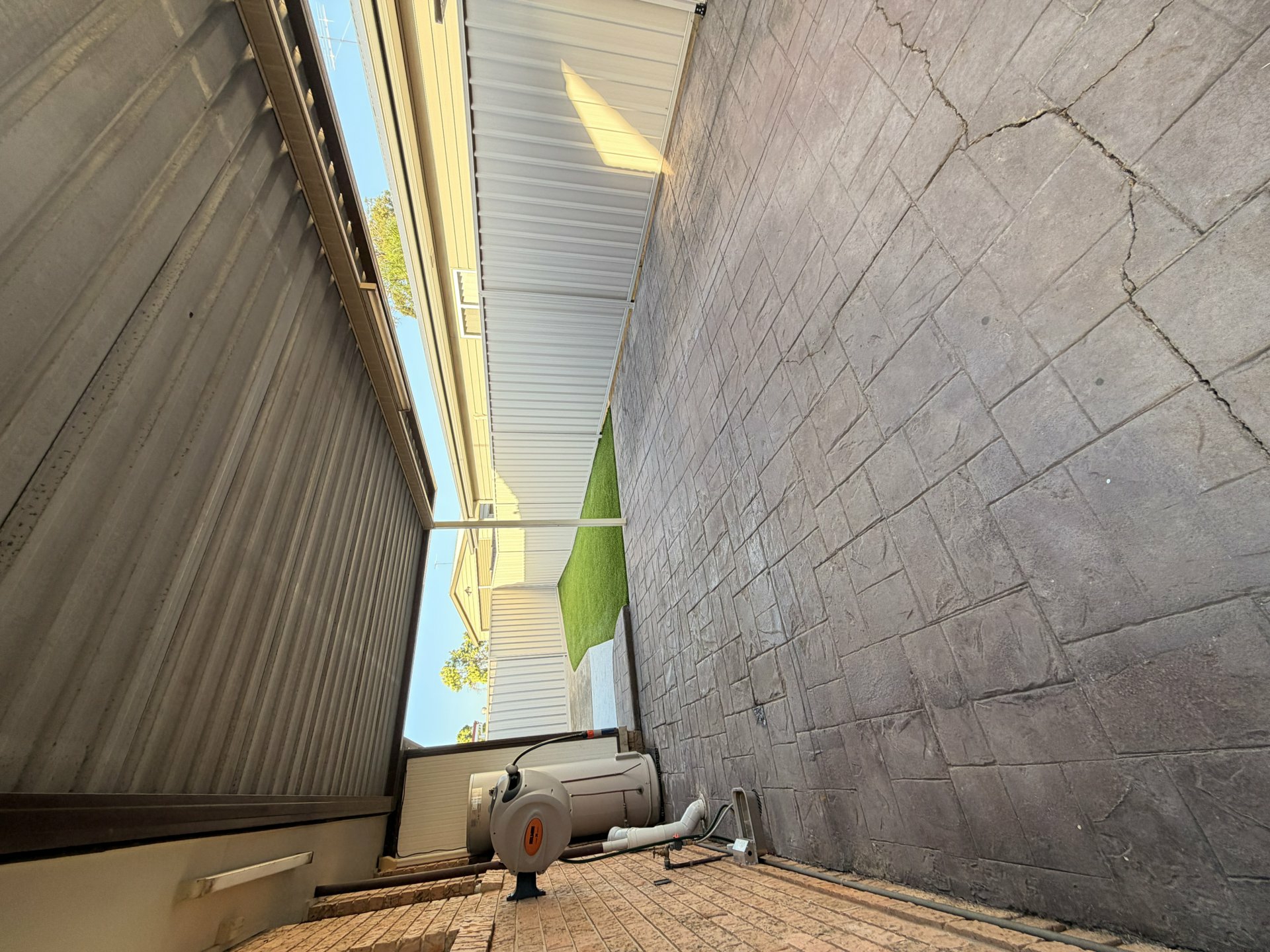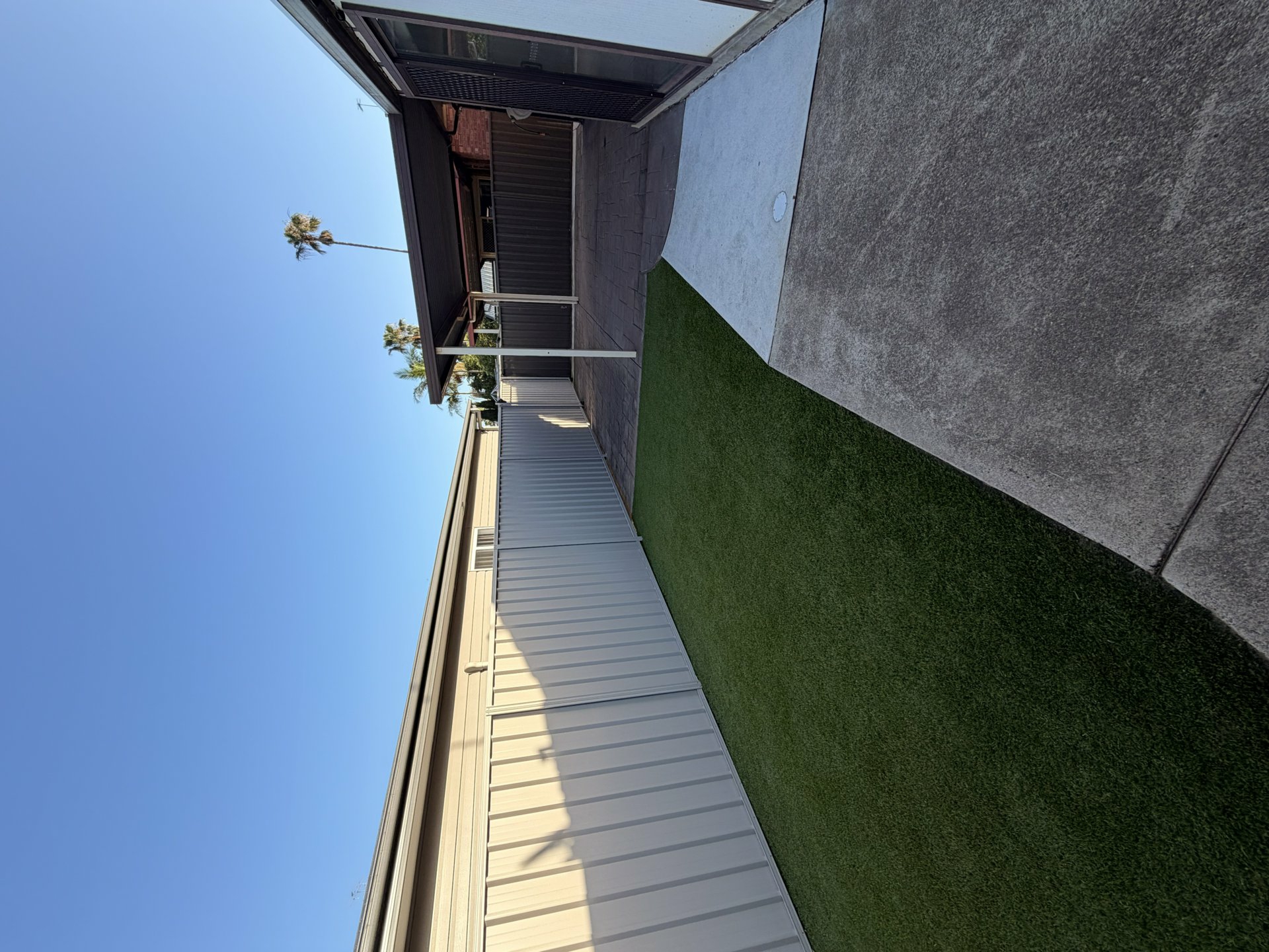 Laundry, undercover outdoor area with artificial grass for low maintenance with side access.