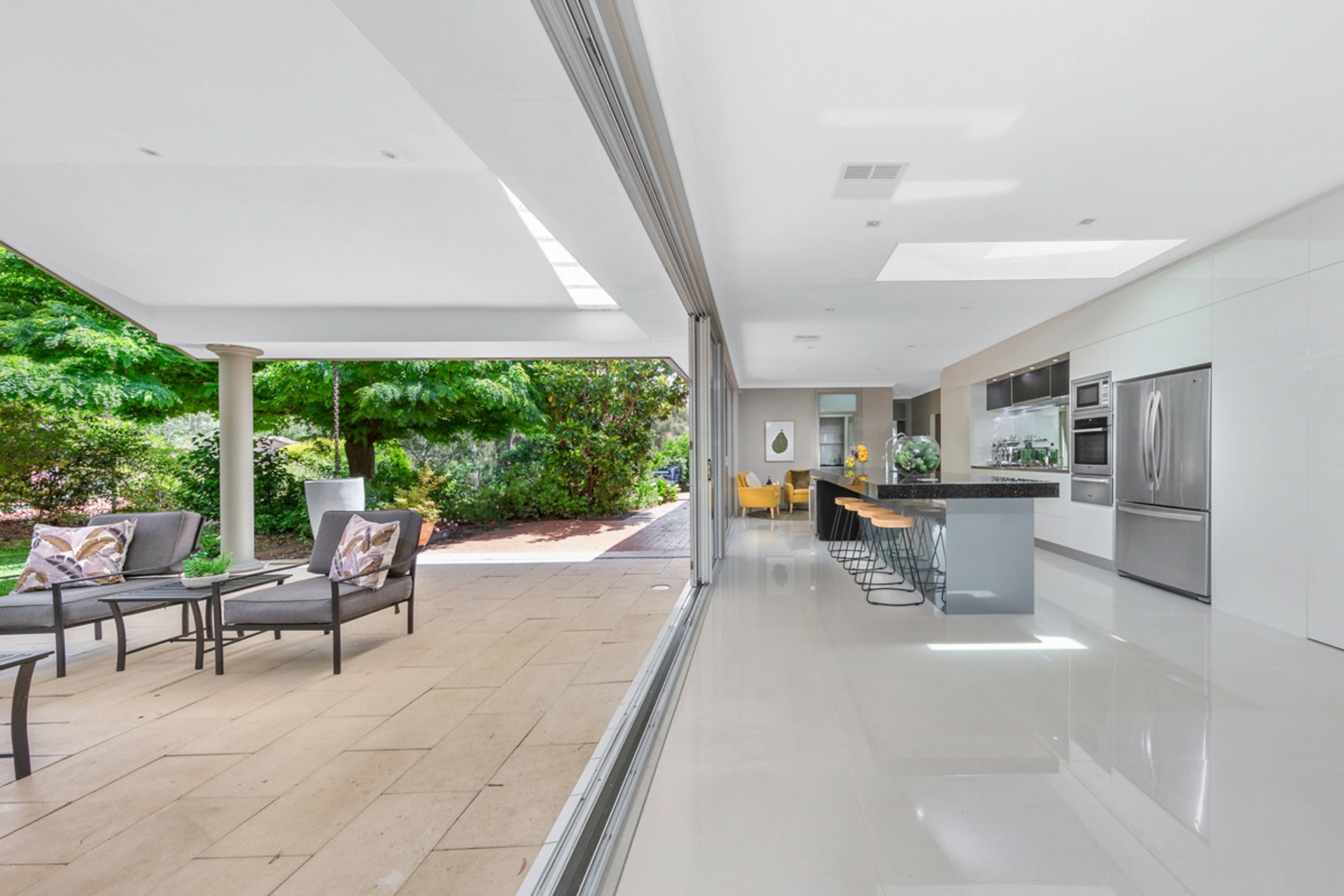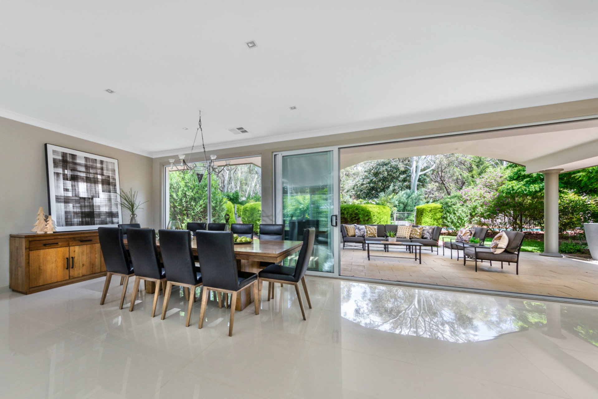 The in- and outside areas flow perfectly together with a large undercover all fresco sitting area, inground pool and various sitting areas throughout the gardens.