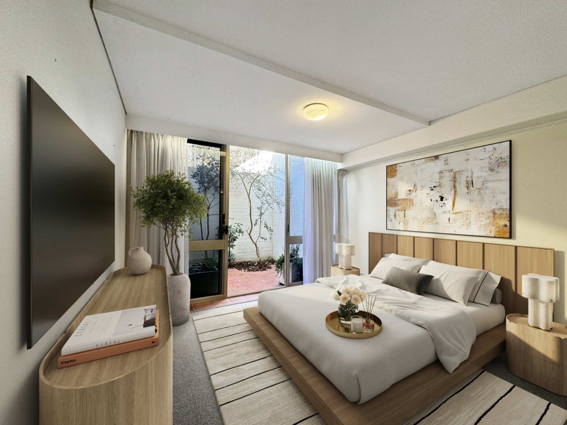 - Bedroom with built in robes and doors out to private East facing rear courtyard