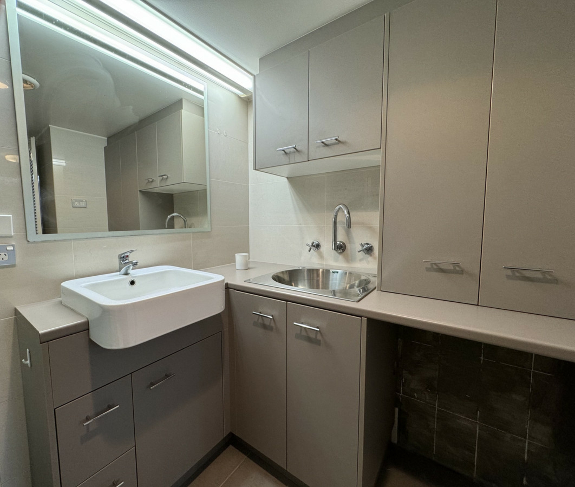 - Bathroom and laundry combined with ample storage and space for front loading washing machine
