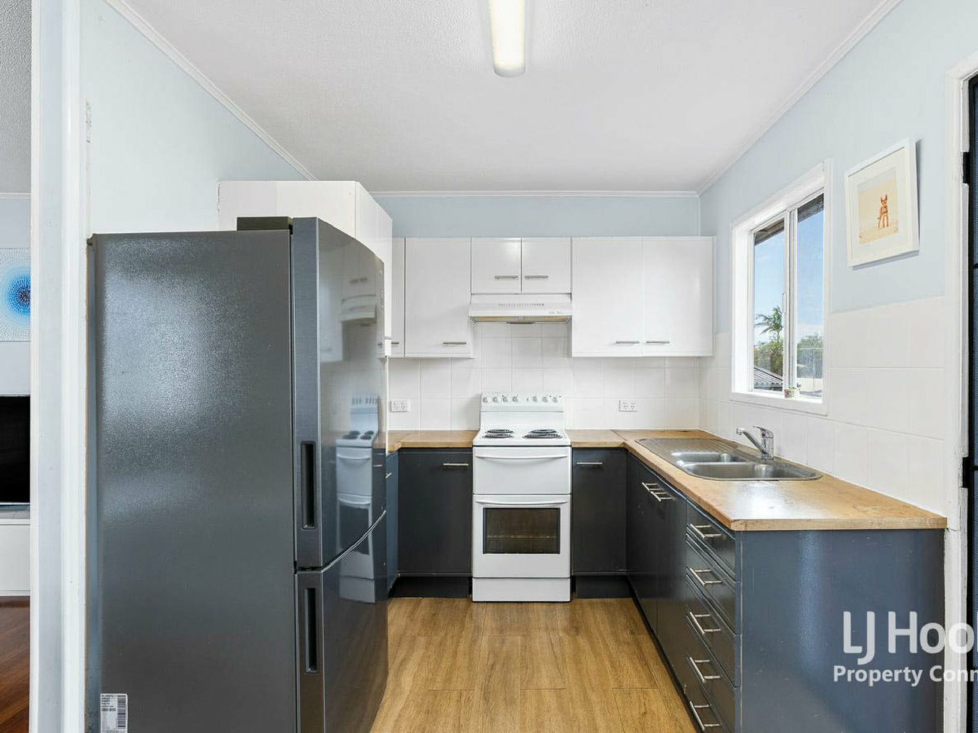 The kitchen overlooks the rear deck and offers electric cooking appliances and a good amount of cupboard space. Catering for the family is easy done here.