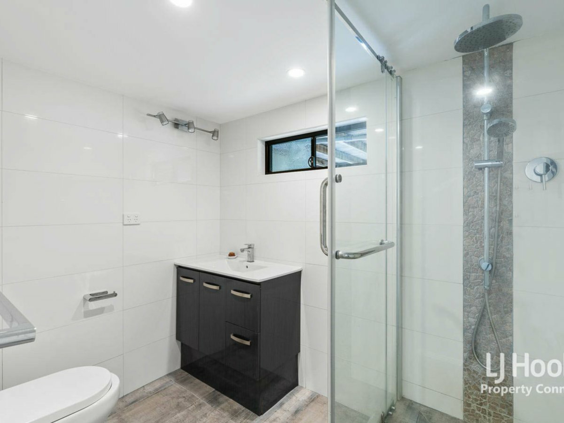 Main bathroom with separate toilet.