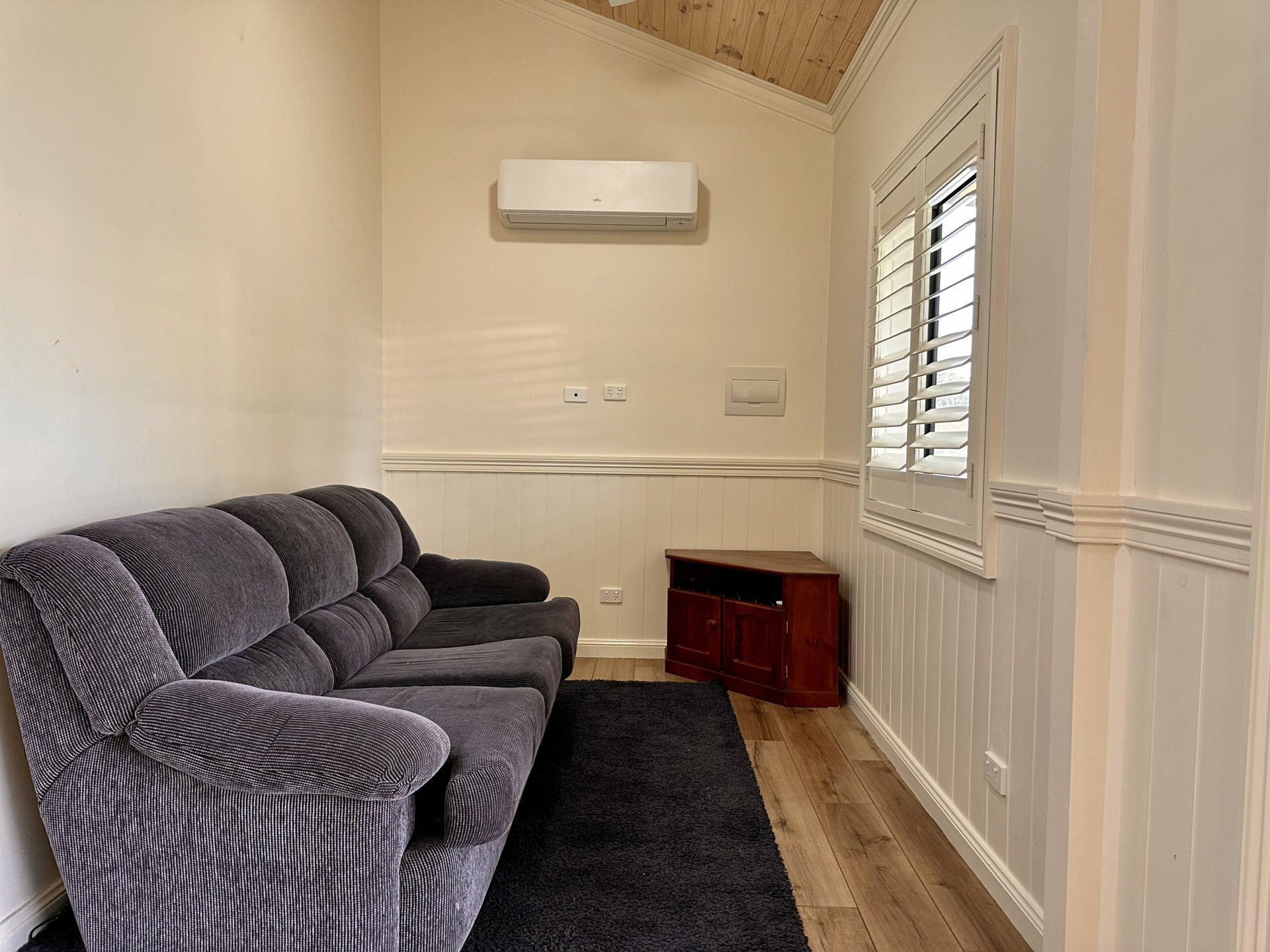 The granny flat at the rear of the property features high timber clad ceilings, two good sized bedrooms with built in robes and ceiling fans. The living area offers a split system air conditioner and opens onto the modern kitchen with electric appliances.