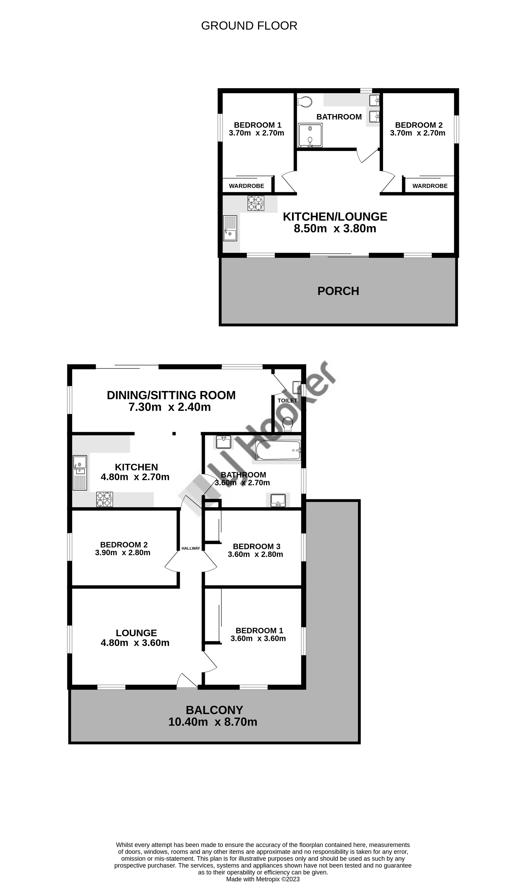 - 3 good sized bedrooms to main home