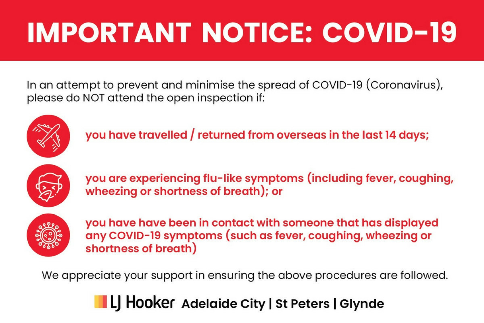 NOTE: In an attempt to prevent and minimise the spread of COVID-19 (Coronavirus), please do NOT attend the open inspection if you have travelled / returned from overseas in the last 14 days, or if you flu-like symptoms (including fever, coughing, wheezing or shortness of breath), or if you have have been in contact with someone that has displayed any COVID19 symptoms (such as fever, coughing, wheezing or shortness of breath);