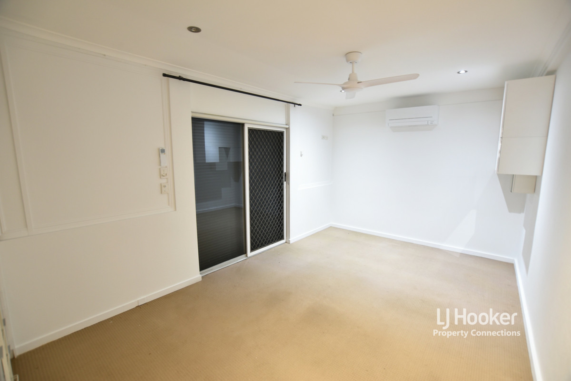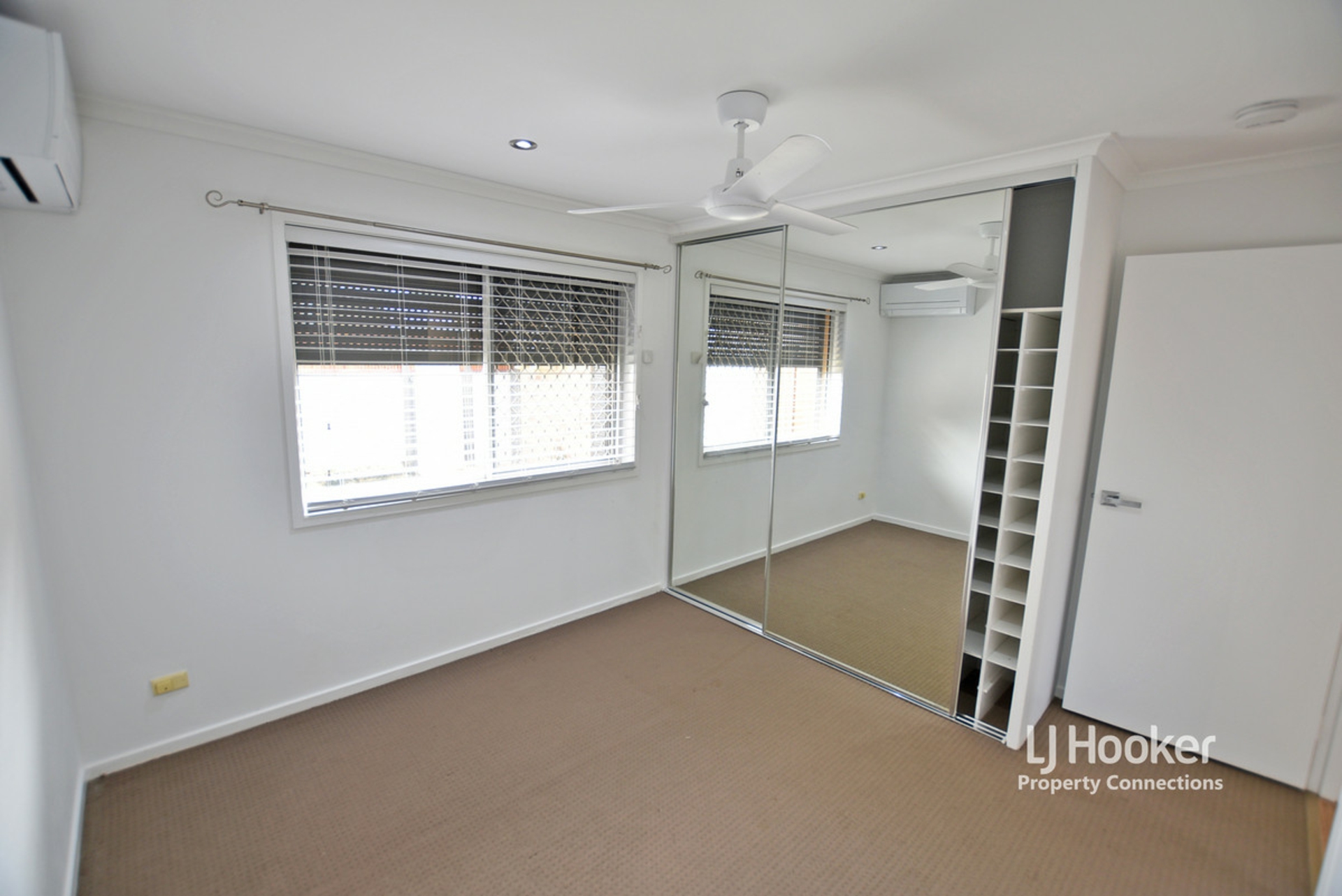 Bedrooms one and two feature wardrobes with mirrored doors, ceiling fans and air conditioning. The third bedroom is positioned at the front of the home and is the converted (with approval) garage. Offering a nearly double sized bedroom, ceiling fan and air conditioning. There is sliding door access out to the courtyard and this his room also features a large bank of wardrobes plus additional head height storage cupboards at the rear of the room.